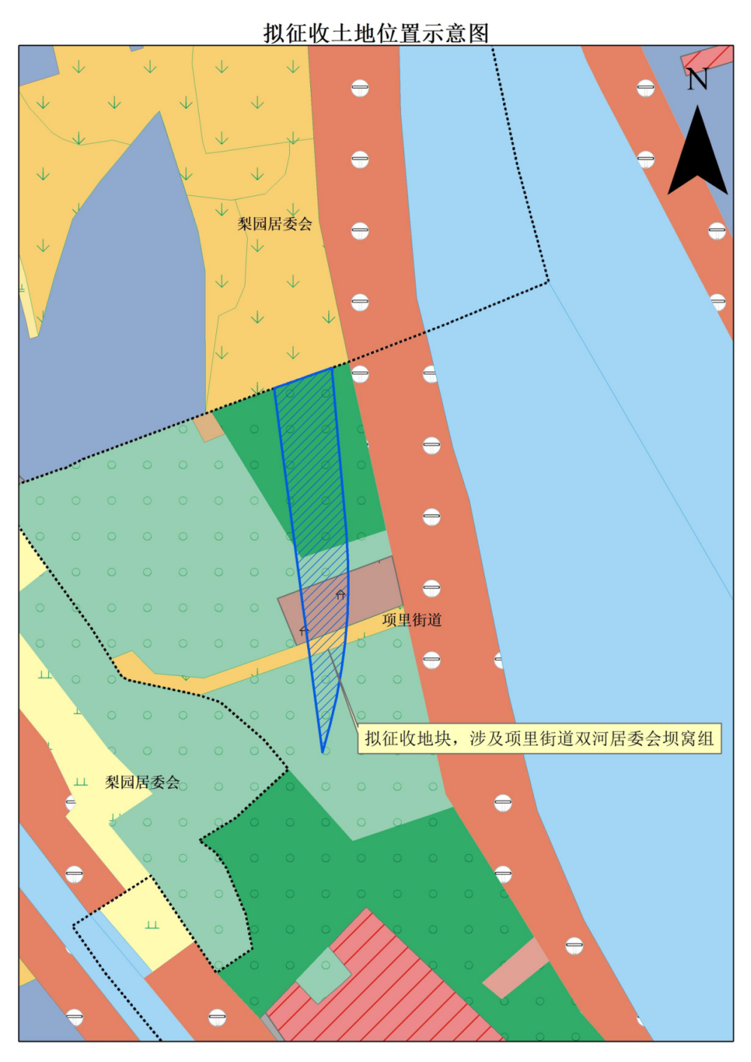 本次拟征收土地位于项里街道双河居委会坝窝组范围内。拟征收土地位置详见附图。