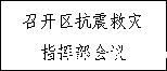 区抗震救灾指挥部指挥中心是抗震救灾指挥的中枢,指挥长、副指挥长由区抗震救灾指挥部副总指挥兼任,各有关部门派员作为指挥中心成员;在区抗震救灾指挥部领导下,指挥中心负责抗震救灾面上的协调和综合调度及震情、灾情、救灾等抗震救灾信息收集汇总,以及各种指令和救灾需求的上传下达。