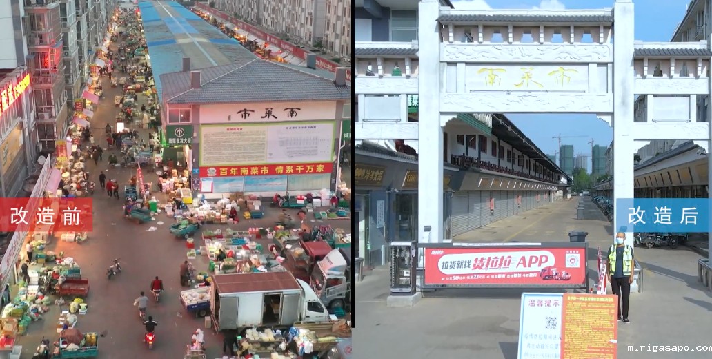 构建“城管+交警+市监+水务”等多部门联动执法治理机制,取缔被占用露天市场,拆除违建4300余平方米,收回公共空间15万平方米;新建停车场5个,停车泊位151个,设置三轮车停车区5处;对桥南路进行整体提升,改造路面 6000平方米;新出建筑立面3200 余平方米,新增封闭式商铺166间,结合南菜市风格定位,搭建民俗大舞台和仿古景观墙,市场功能配套得到明显增强。