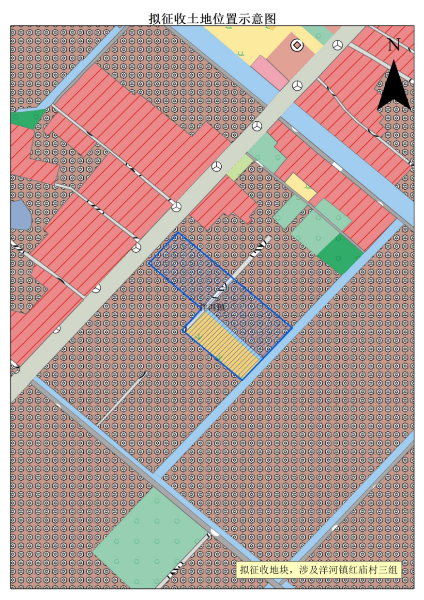 本次拟征收土地位于洋河镇红庙村三组范围内。拟征收土地位置详见附图。