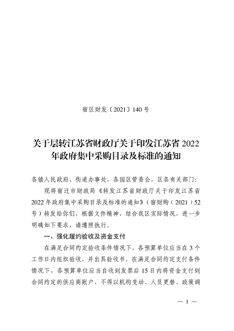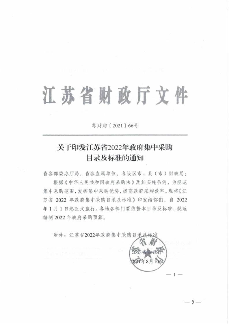 转发省财政厅关于印发江苏省2022年政府集中采购目录及标准的通知