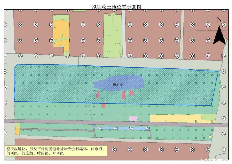 本次拟征收土地位于三棵树街道叶圩居委会村集体、闫东组、闫西组、闫庄组、叶南组、叶西组范围内。拟征收土地位置详见附图。