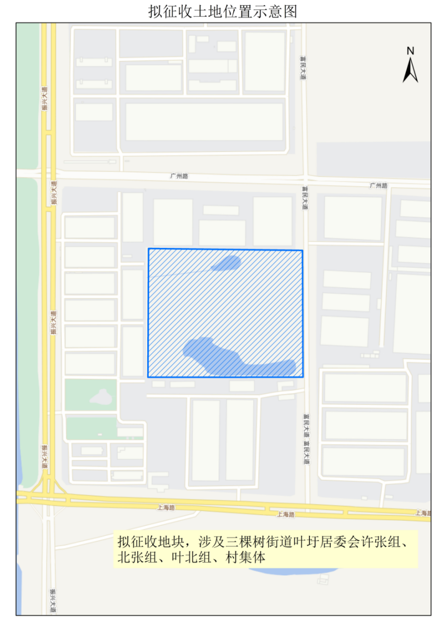本次拟征收土地位于三棵树街道叶圩居委会许张组、北张组、叶北组、村集体范围内。拟征收土地位置详见附图。