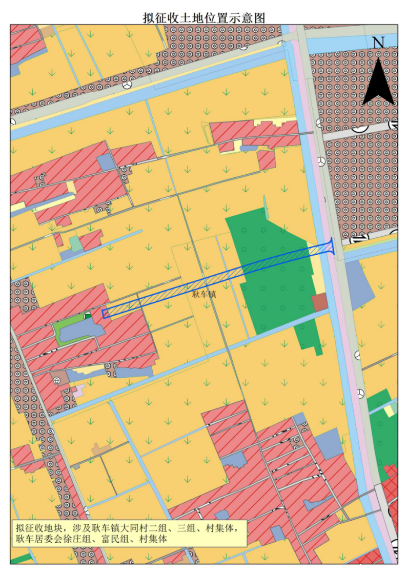本次拟征收土地位于耿车镇大同村二组、三组、村集体,耿车居委会徐庄组、富民组、村集体范围内。拟征收土地位置详见附图。