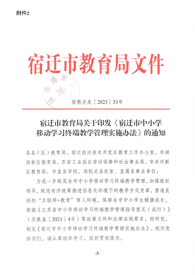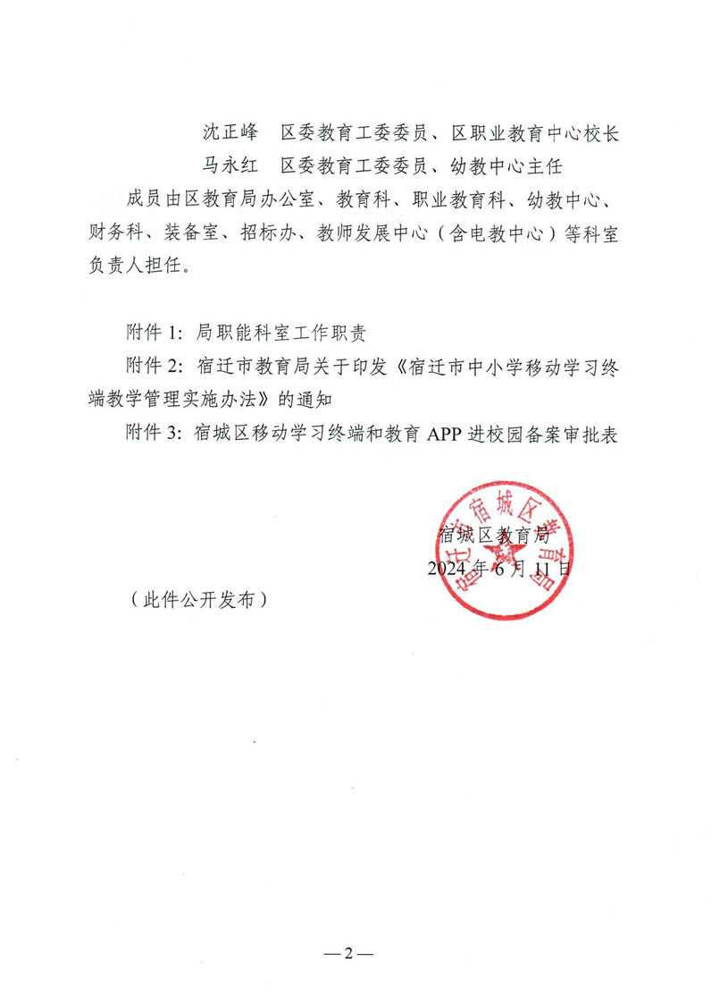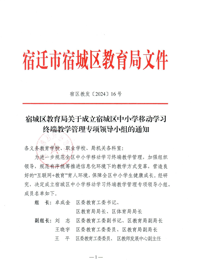宿城区教育局关于成立宿城区中小学移动学习终端教学管理专项领导小组的通知
