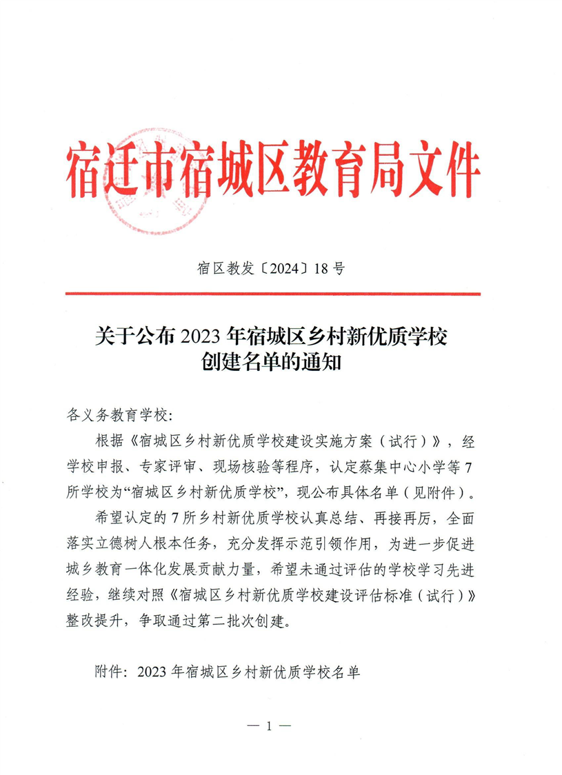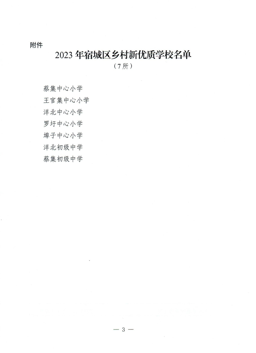 关于公布2023年宿城区乡村新优质学校创建名单的通知