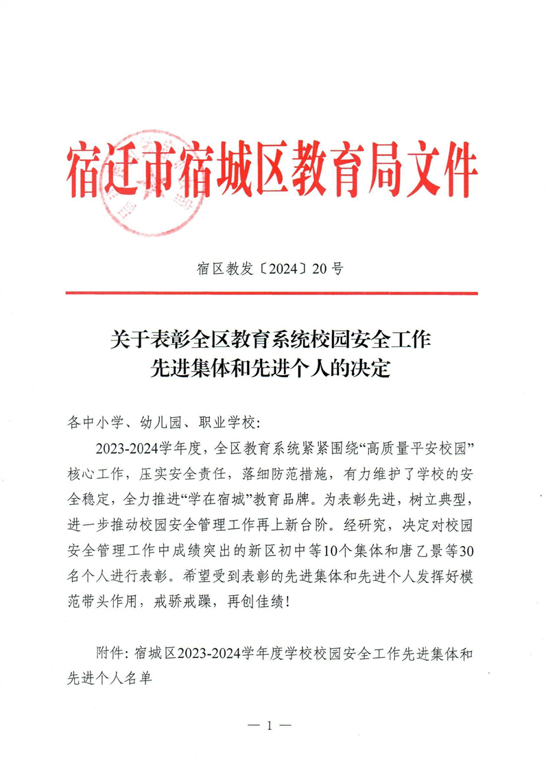 关于表彰全区教育系统校园安全工作先进集体和先进个人的决定