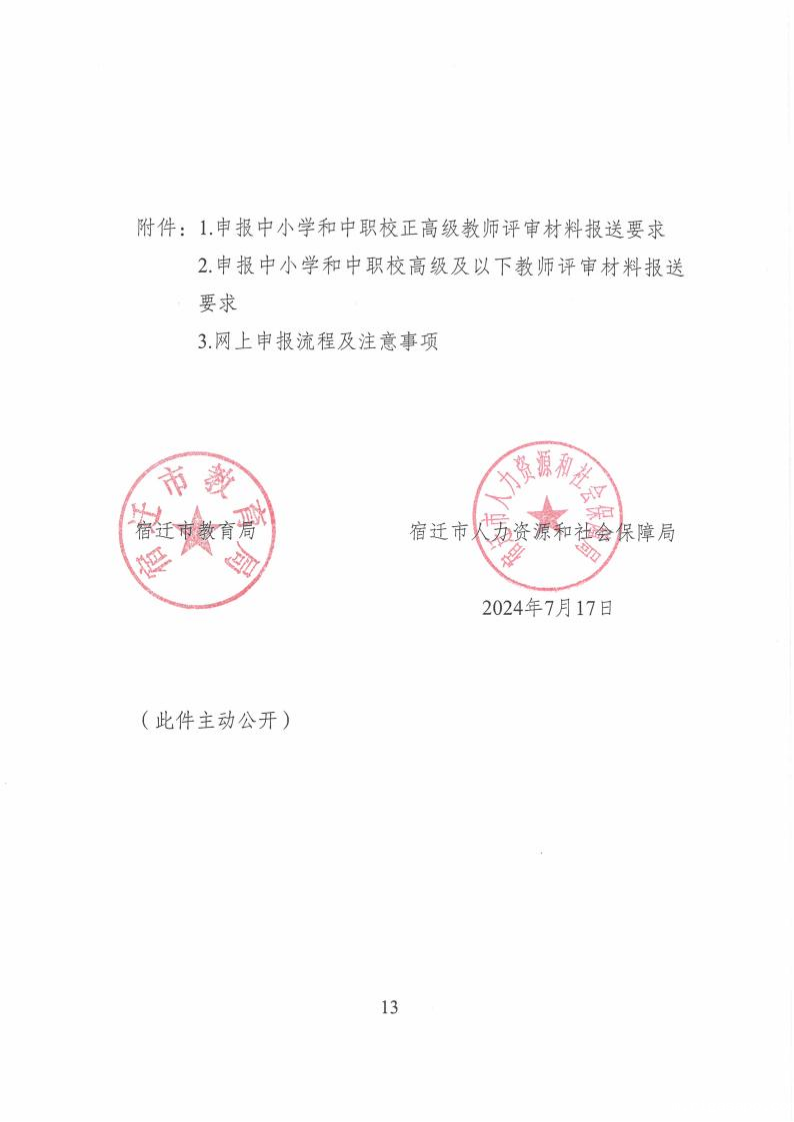 宿迁市中小学正高级教师评审材料报送要求