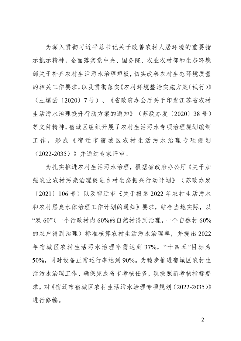 区政府办公室关于印发《宿迁市宿城区农村生活污水治理专项规划(2022-2035年)》的通知