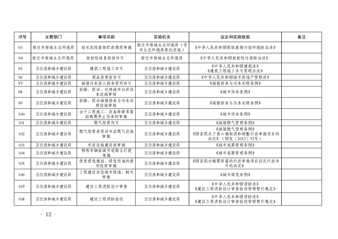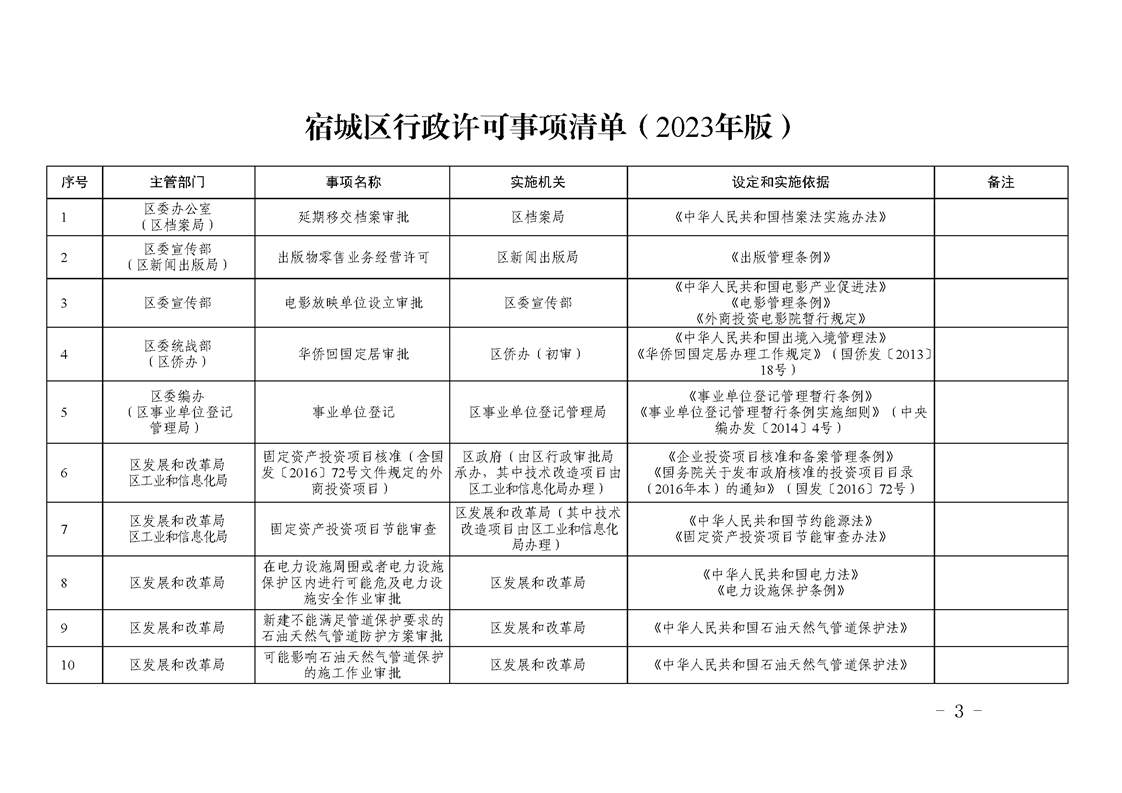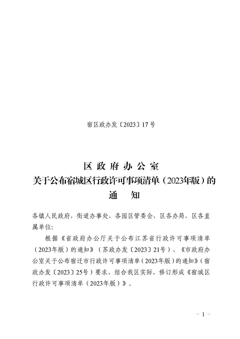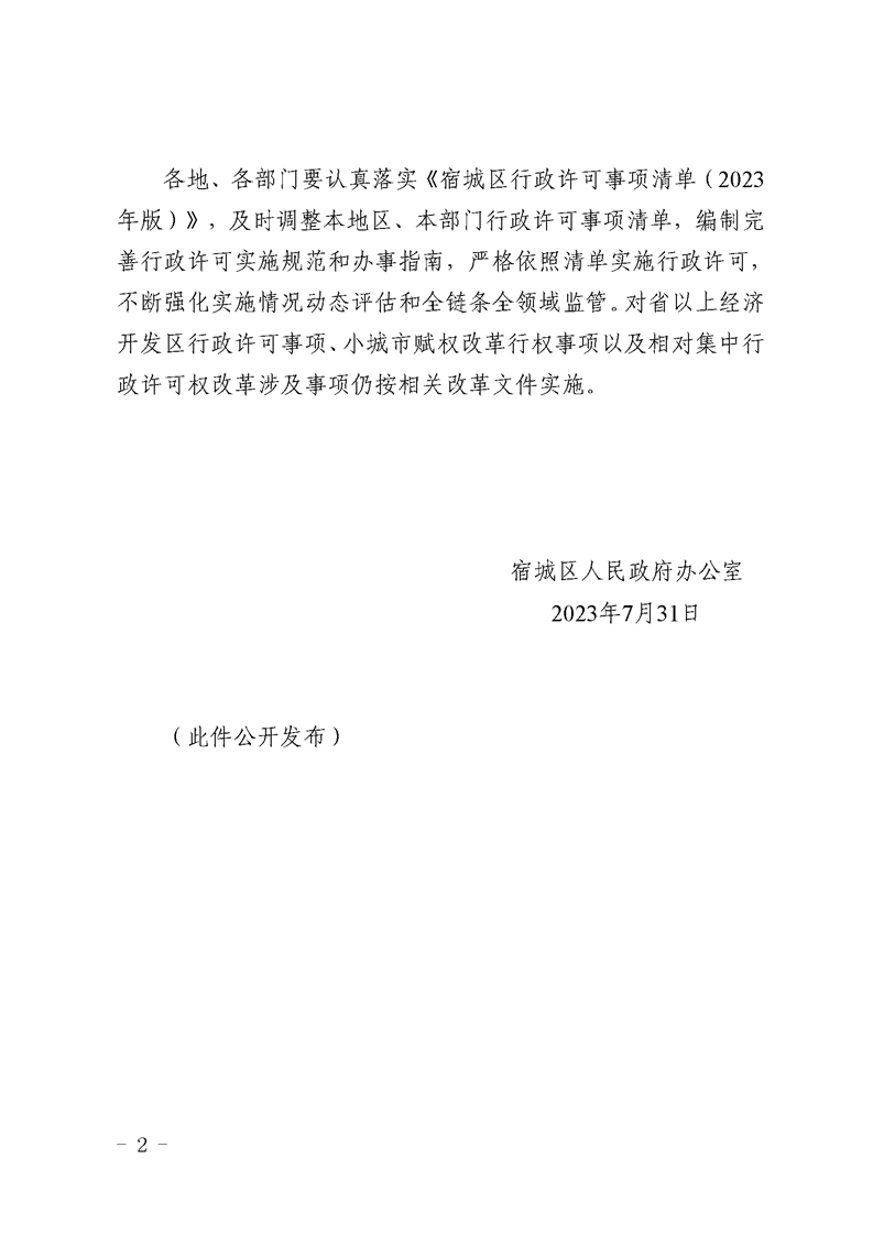 区政府办公室关于公布宿城区行政许可事项清单(2023年版)的通知