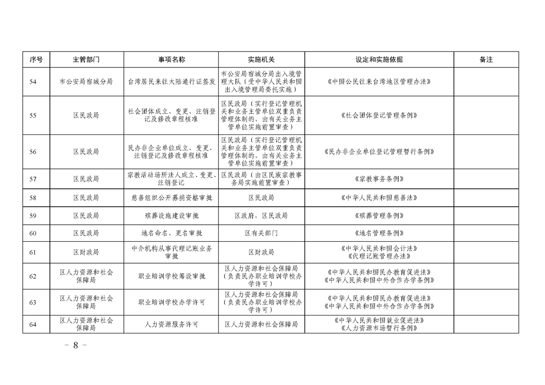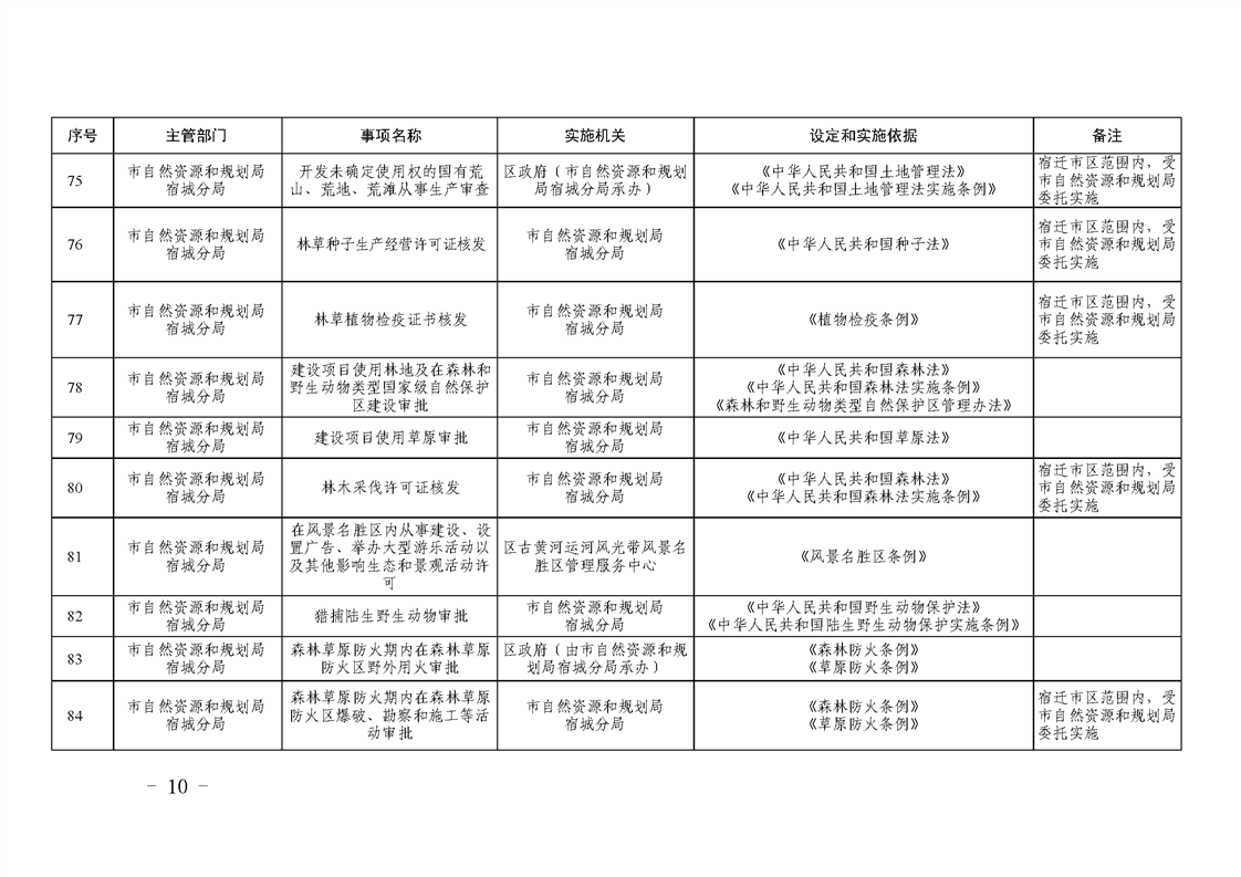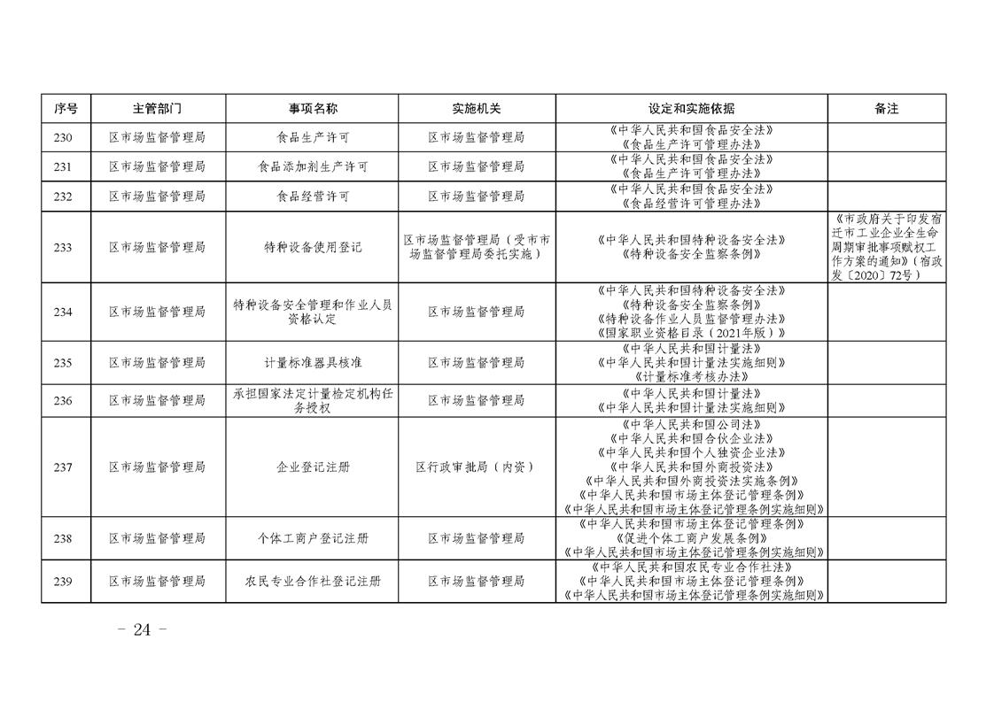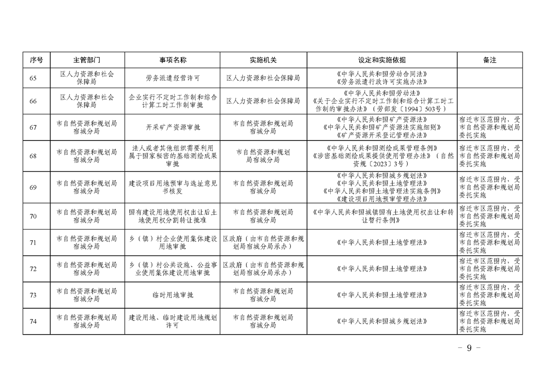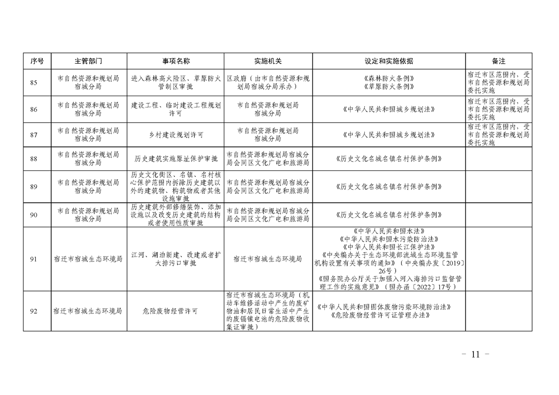 区政府办公室关于公布宿城区行政许可事项清单(2023年版)的通知