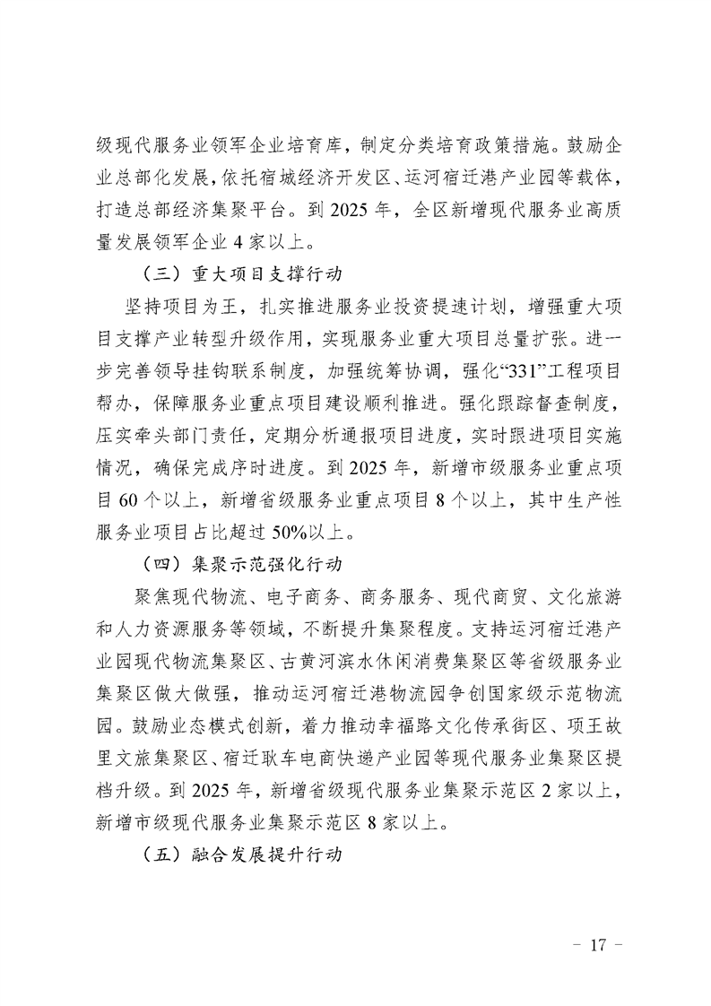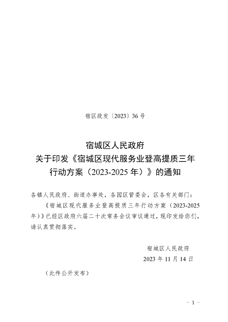 宿城区人民政府关于印发《宿城区现代服务业登高提质三年行动方案(2023-2025年)》的通知