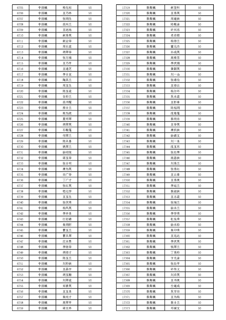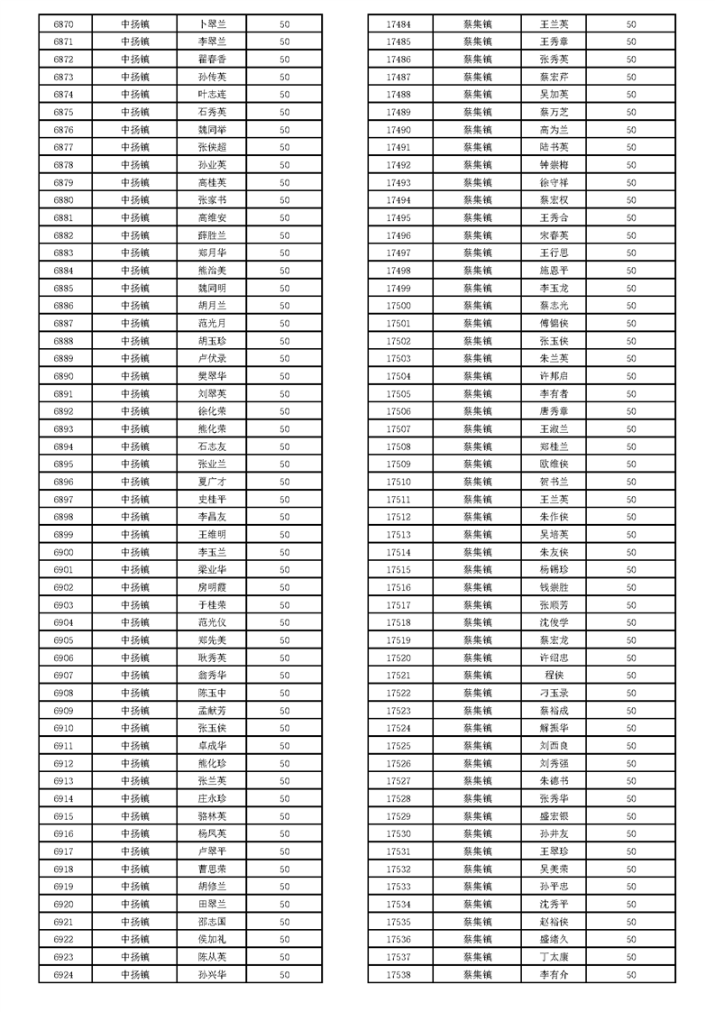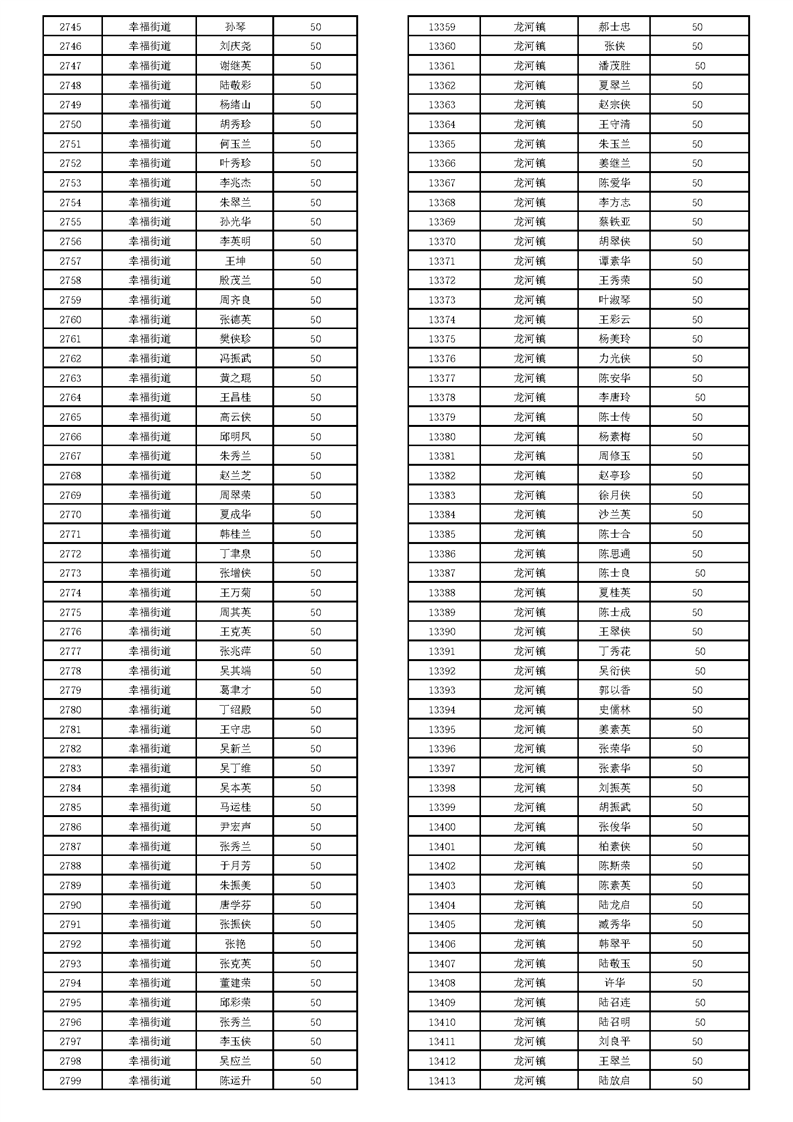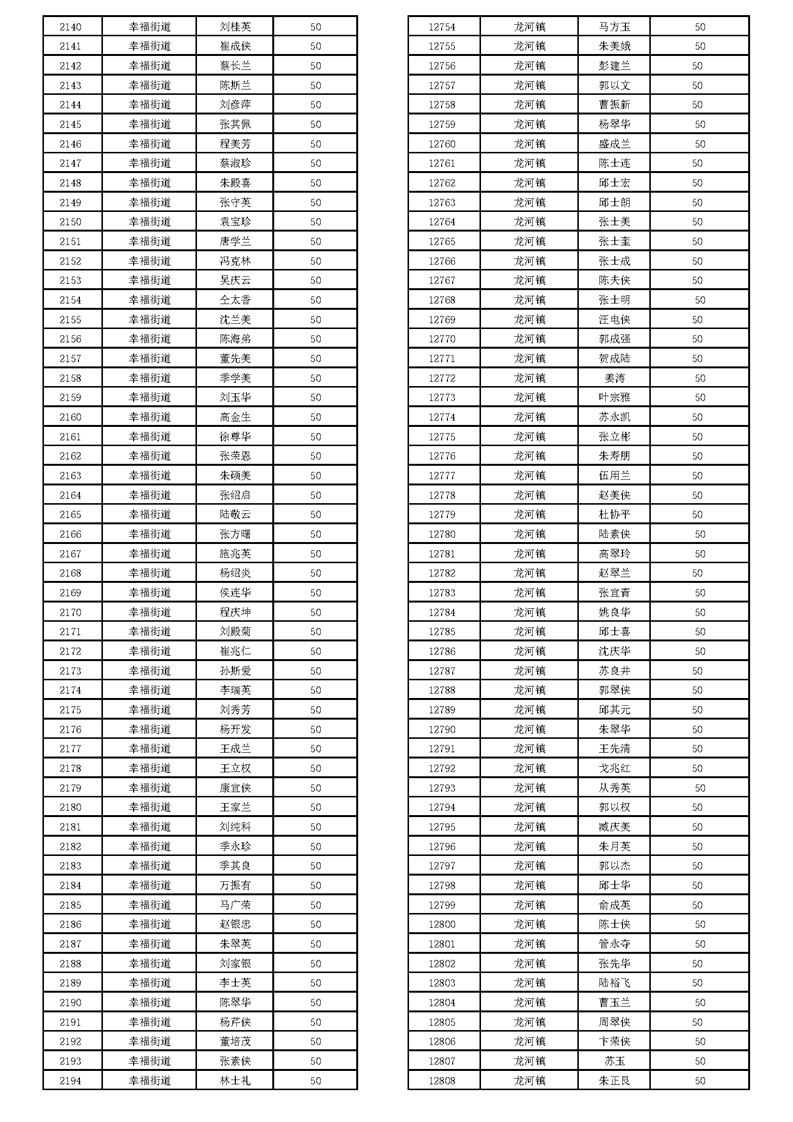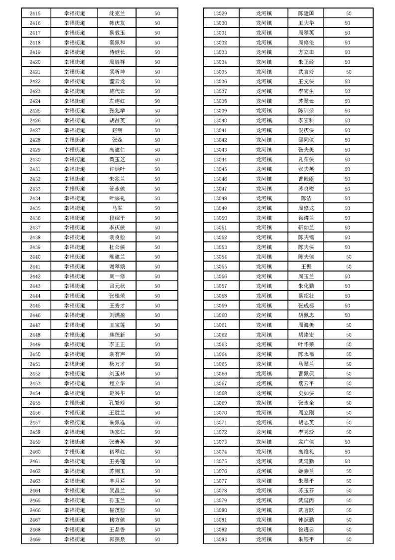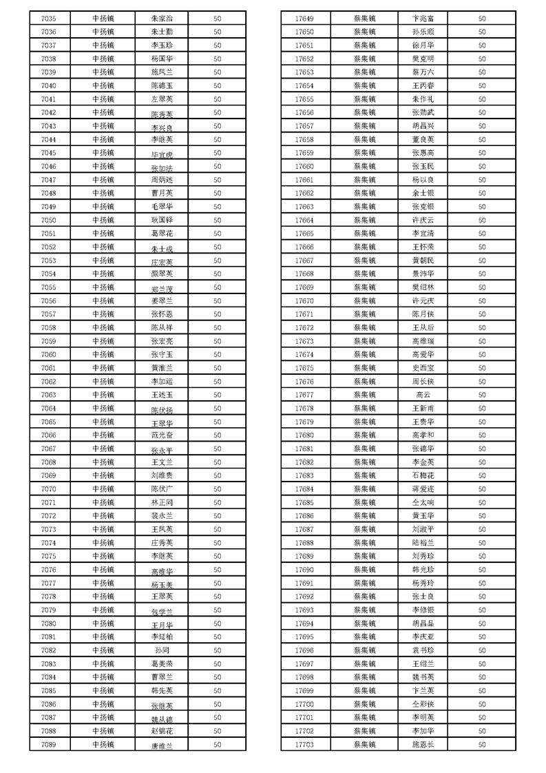 宿城区2025年8月80周岁及以上老年人尊老金长期公示