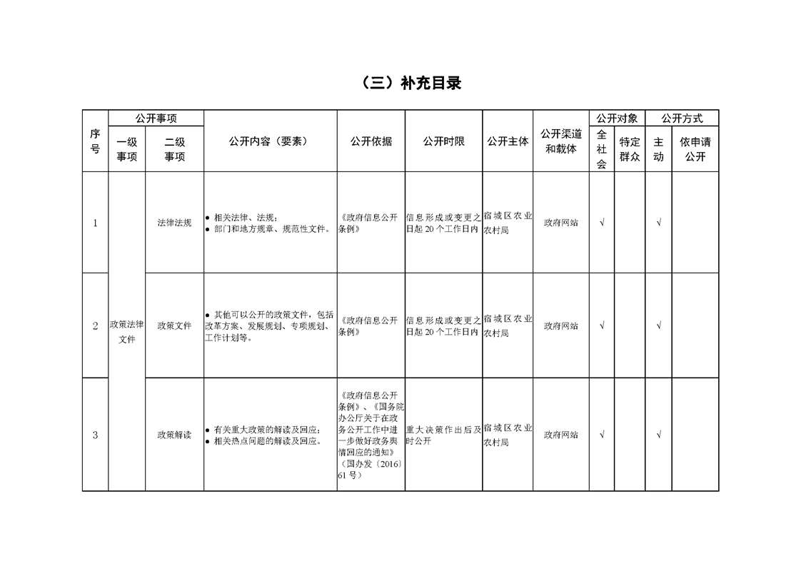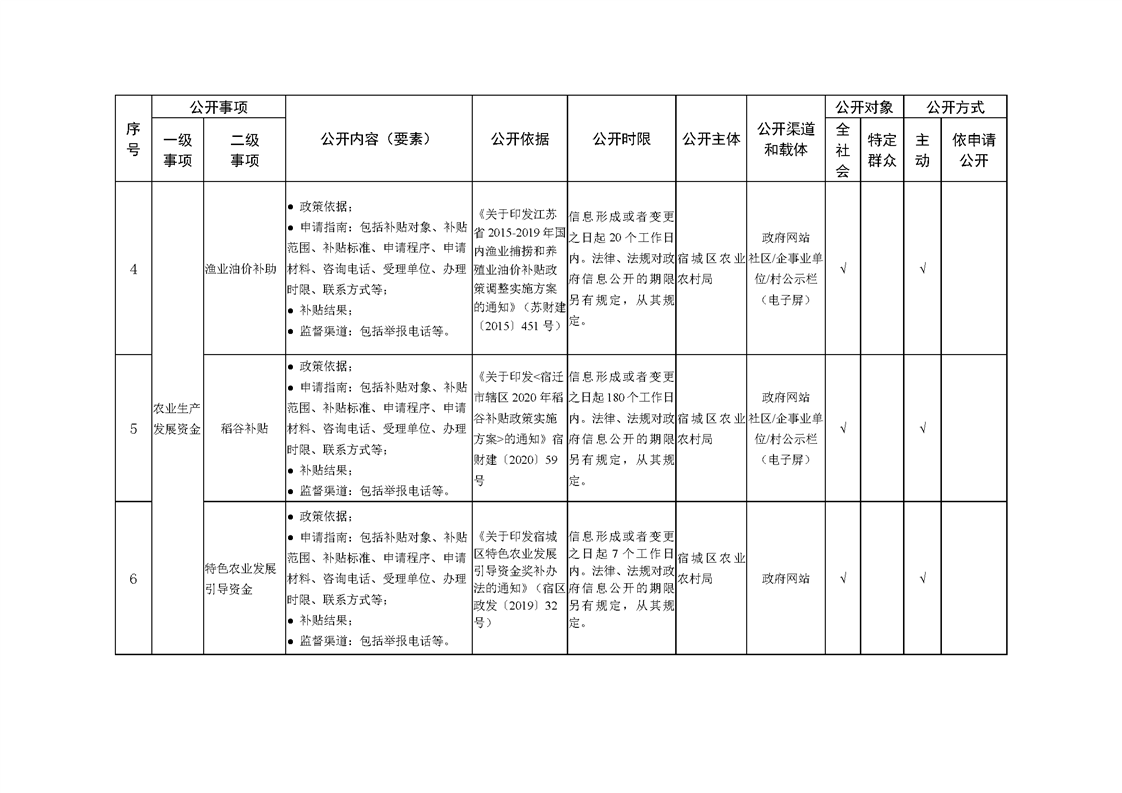 宿城区农业农村局基层政务公开标准目录2024版(涉农补贴、惠农领域)