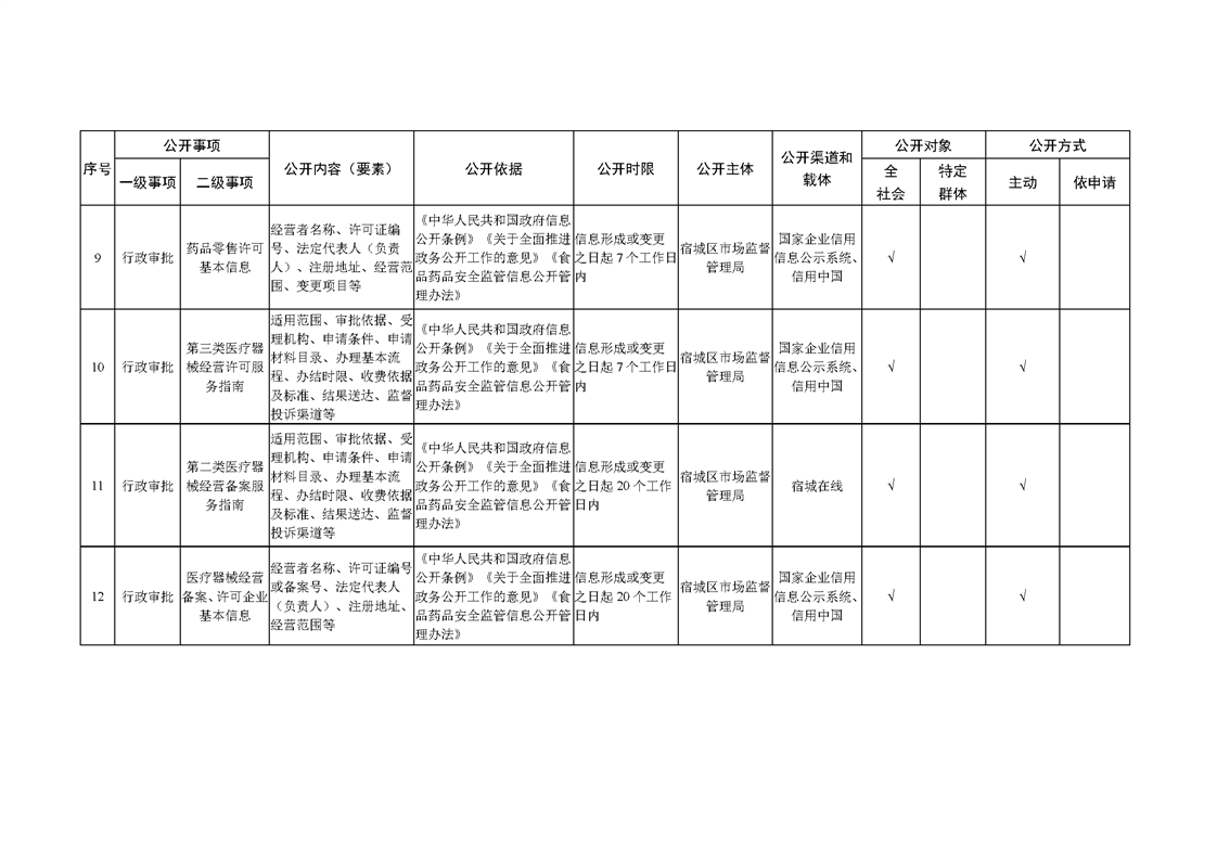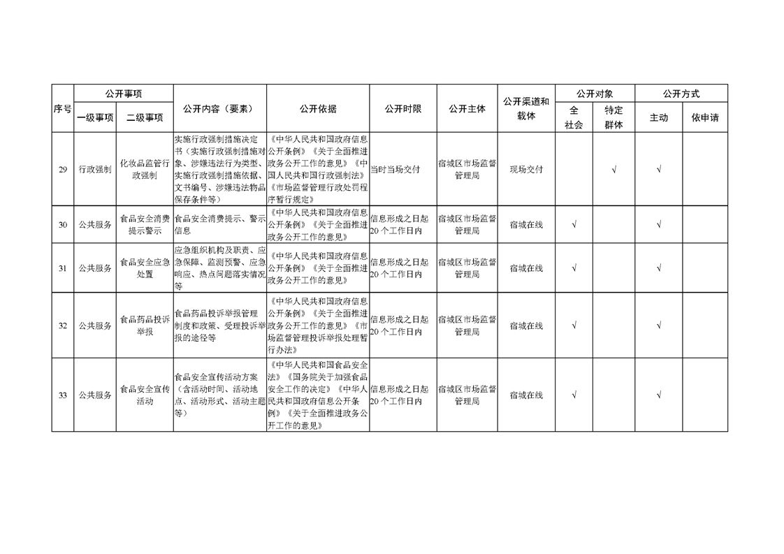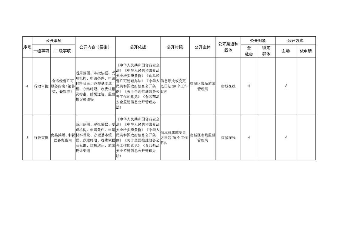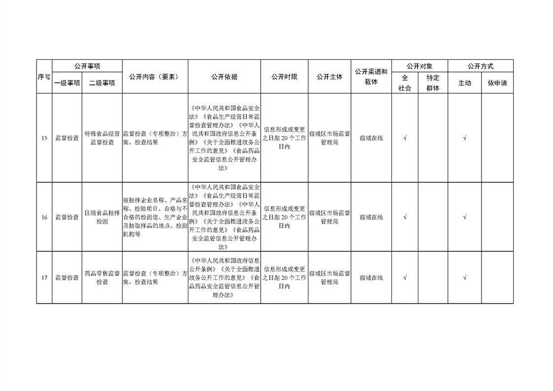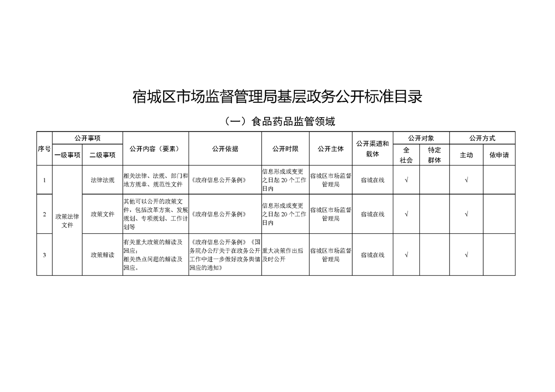 宿城区市场监管局基层政务公开标准目录2024版(食品药品监管领域)