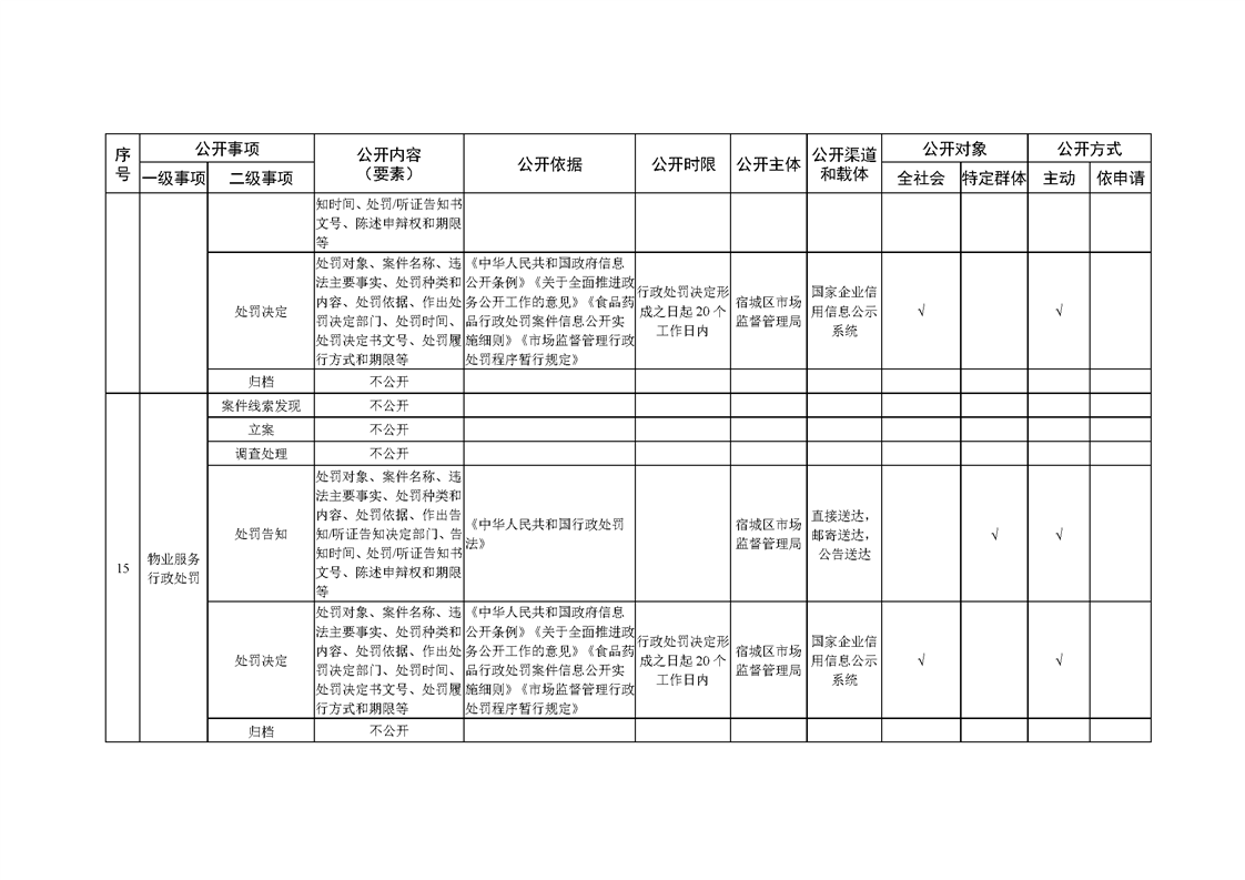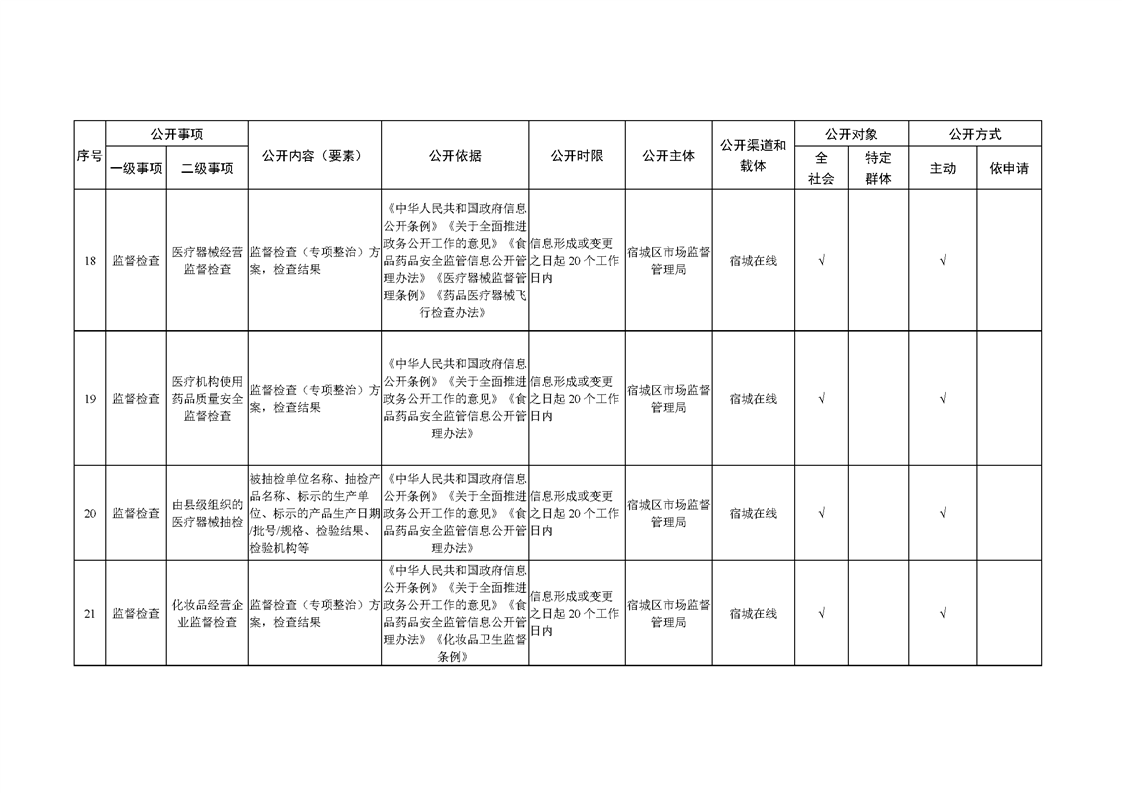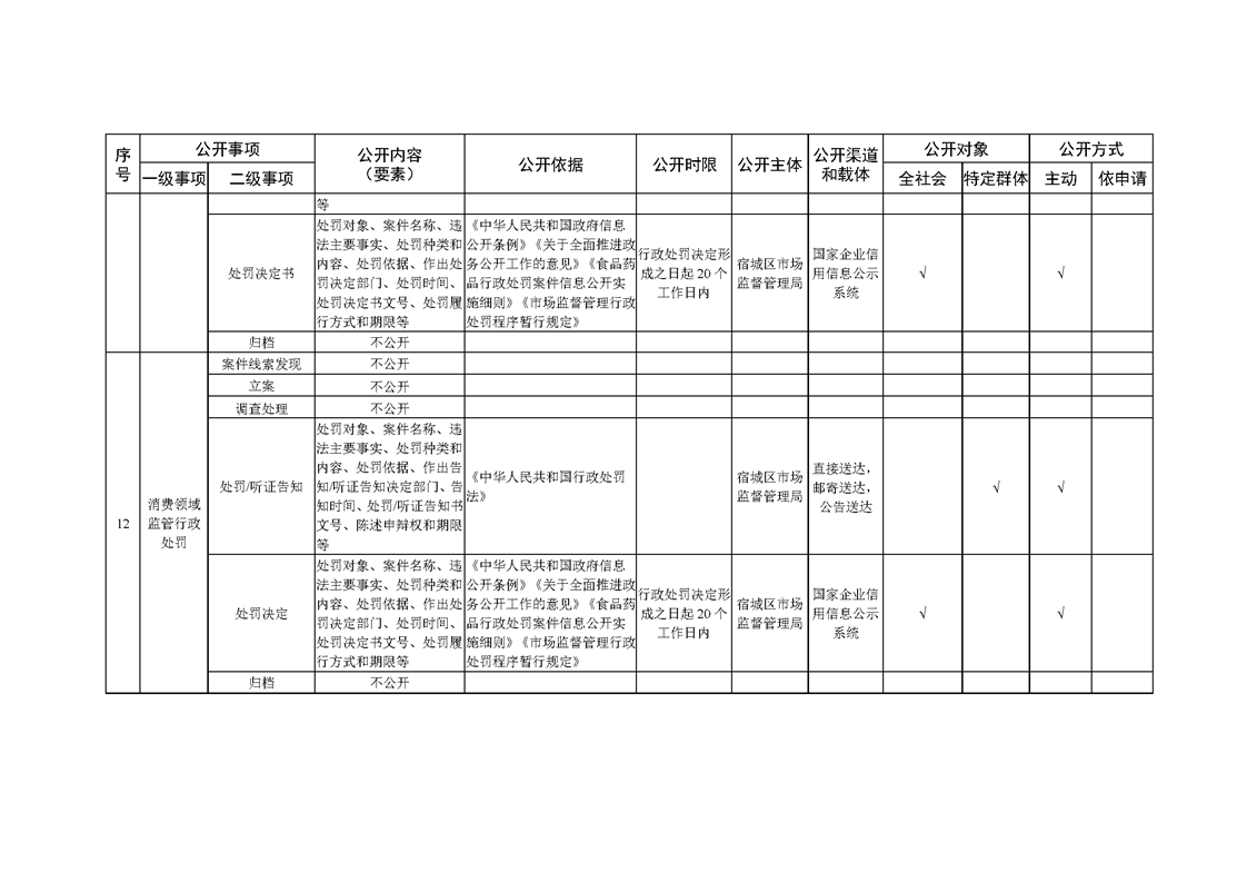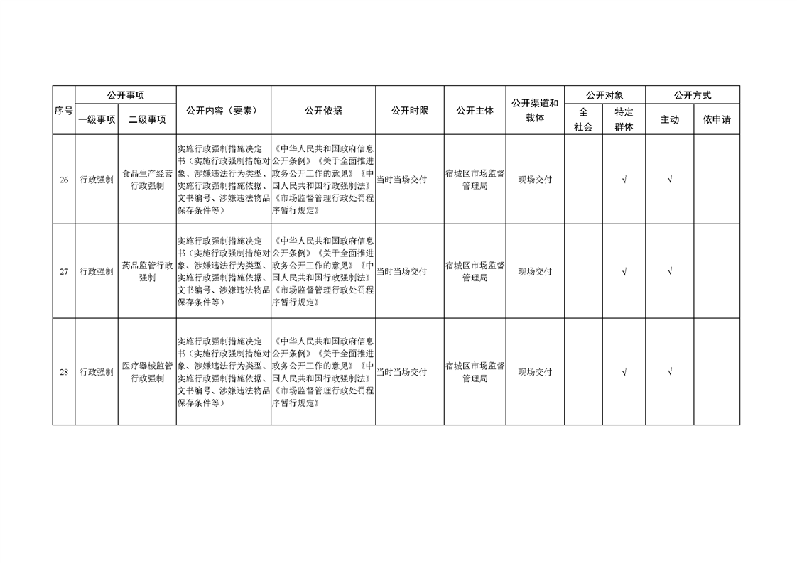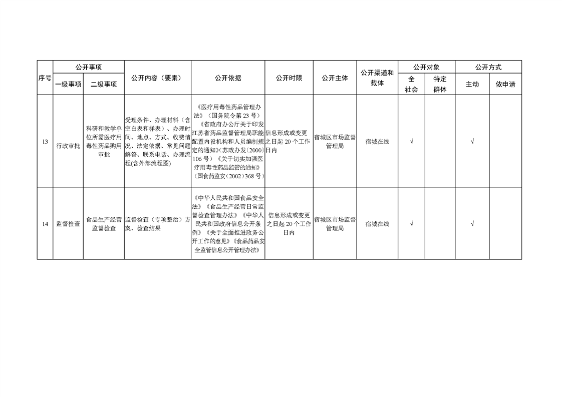 宿城区市场监管局基层政务公开标准目录2024版(食品药品监管领域)