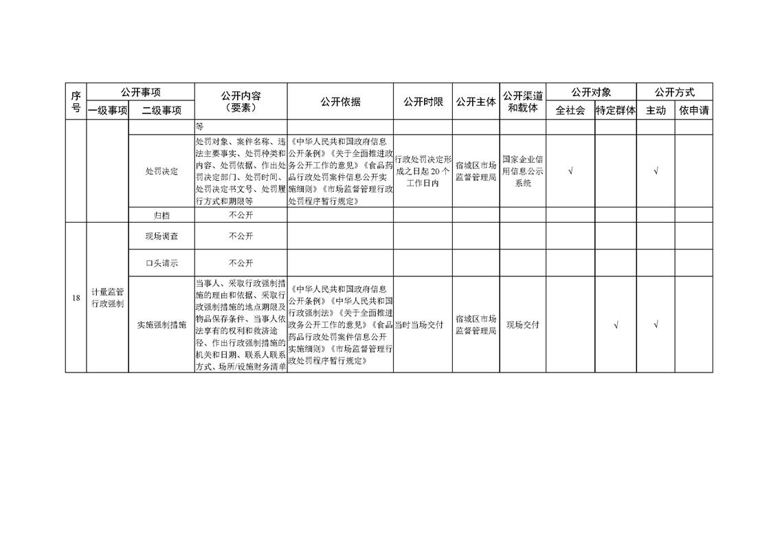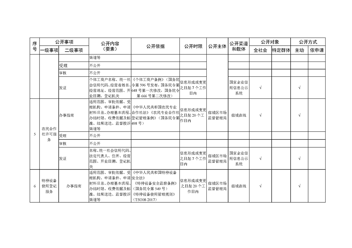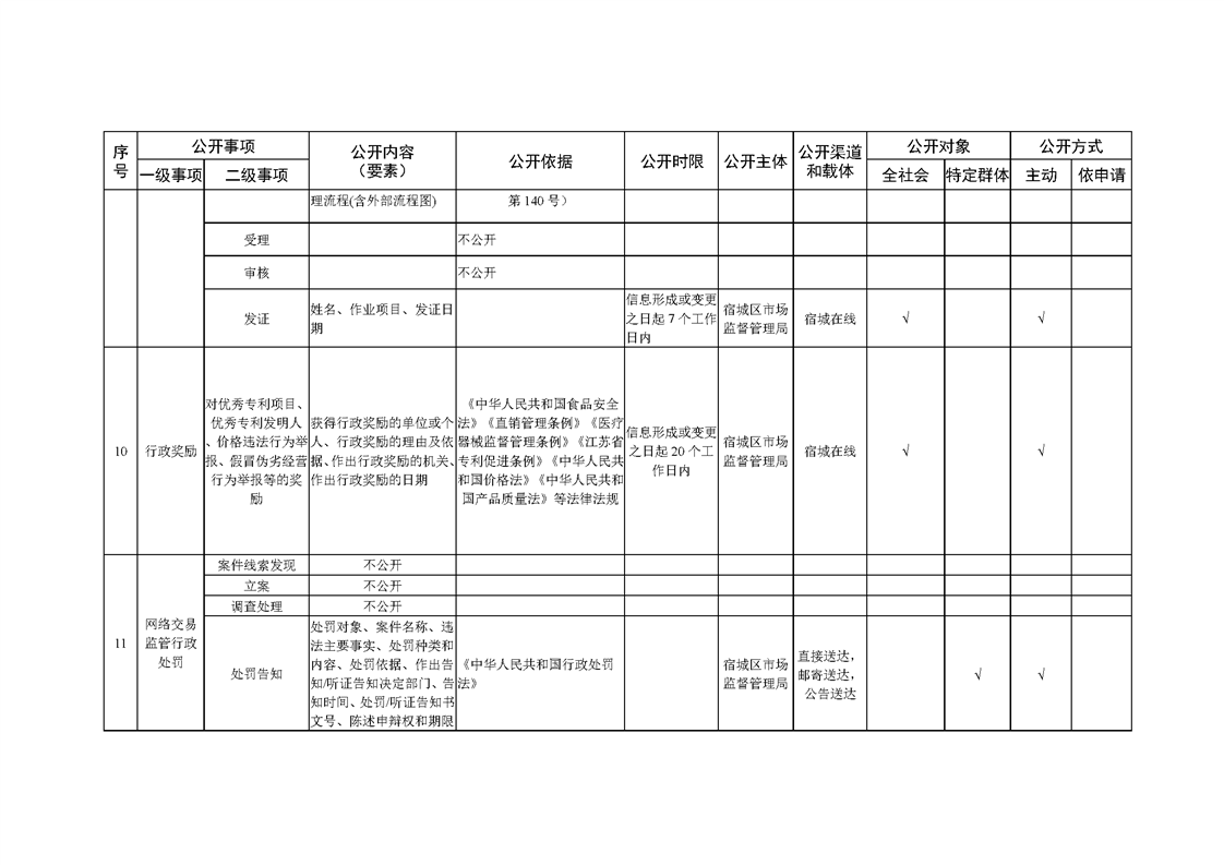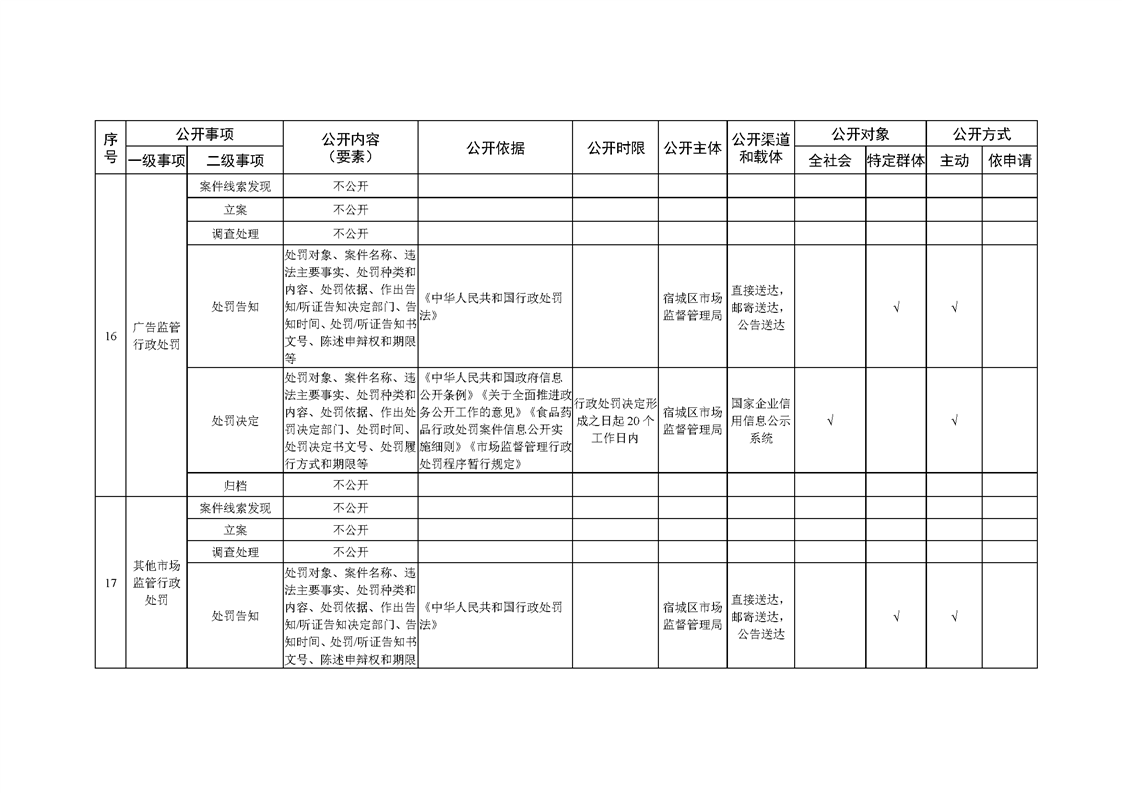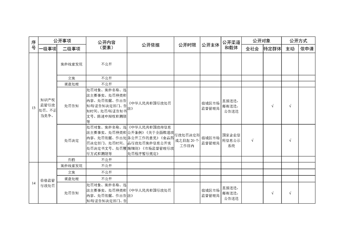 宿城区市场监管局基层政务公开标准目录2024版(食品药品监管领域)