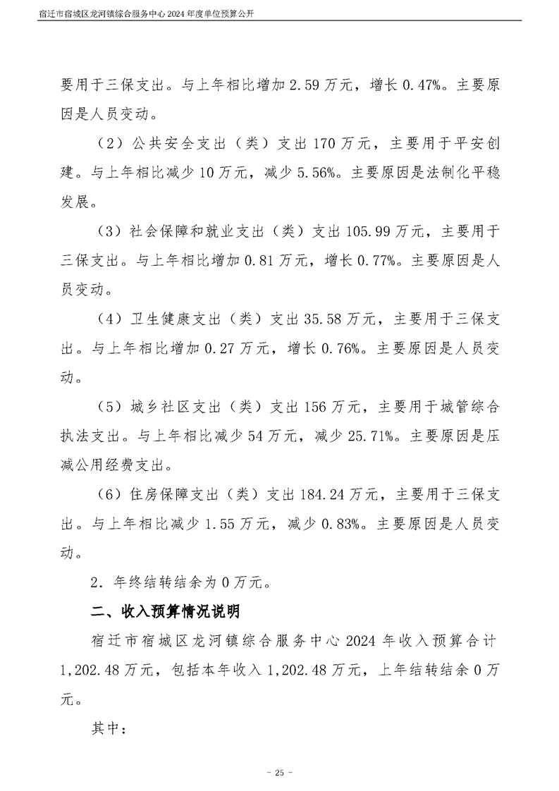 宿迁市宿城区龙河镇综合服务中心2024年度单位预算公开