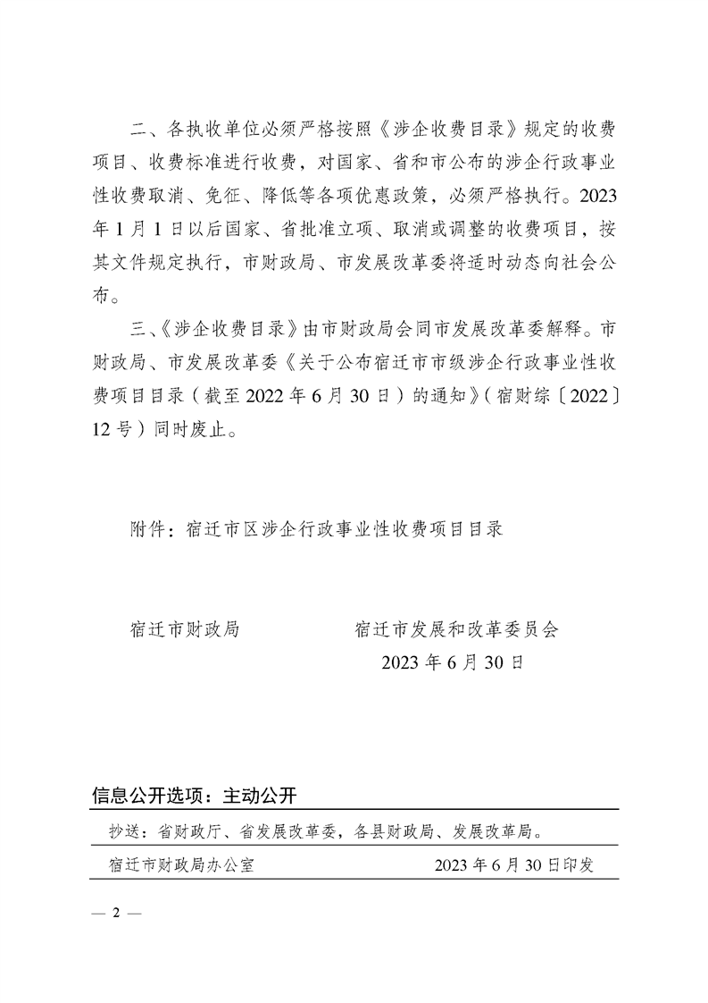 关于转发《宿迁市区涉企行政事业性收费项目目录》的通知