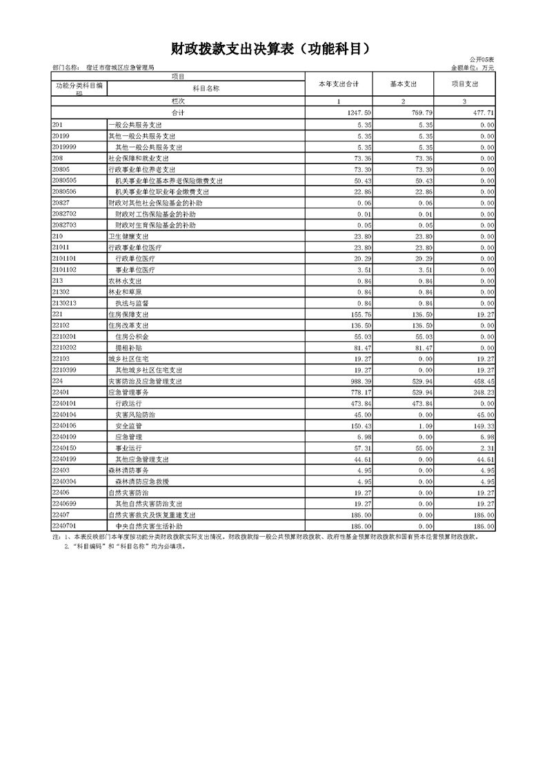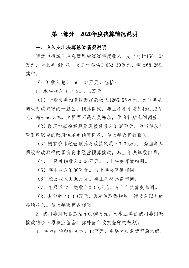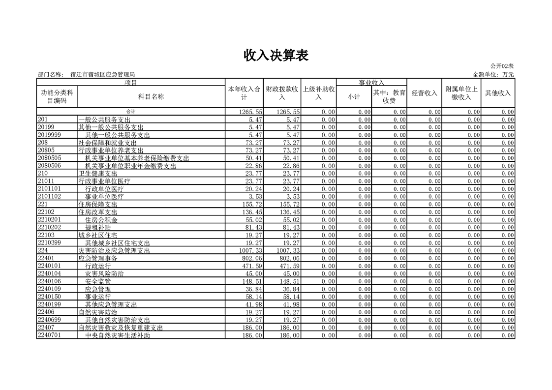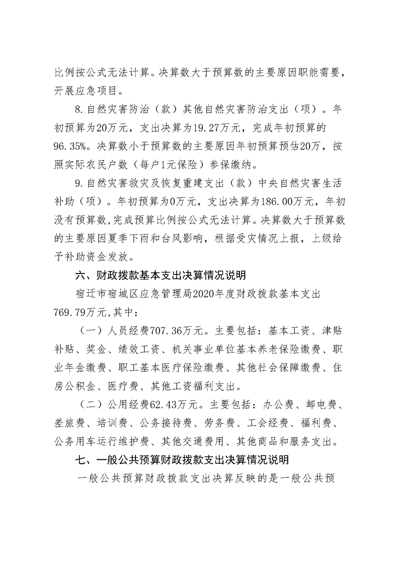 2020年宿迁市宿城区应急管理局决算公开表