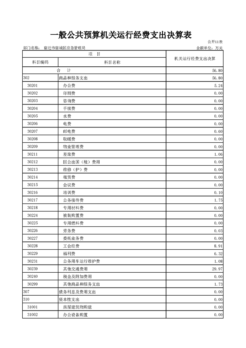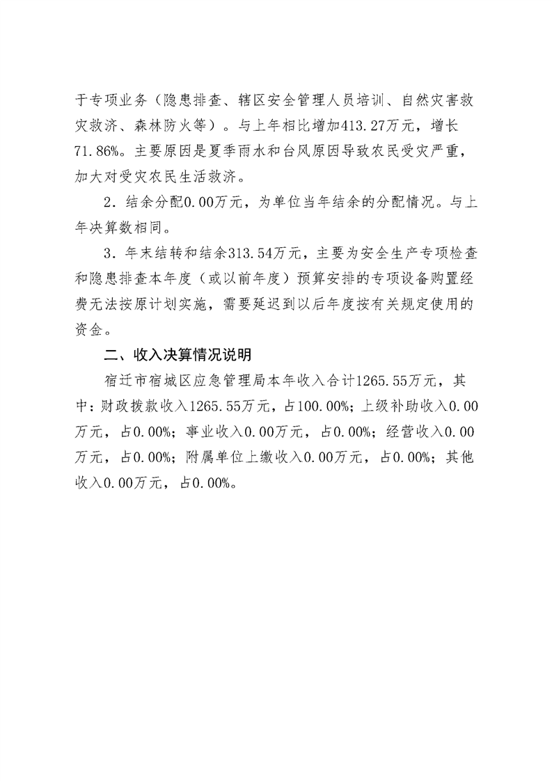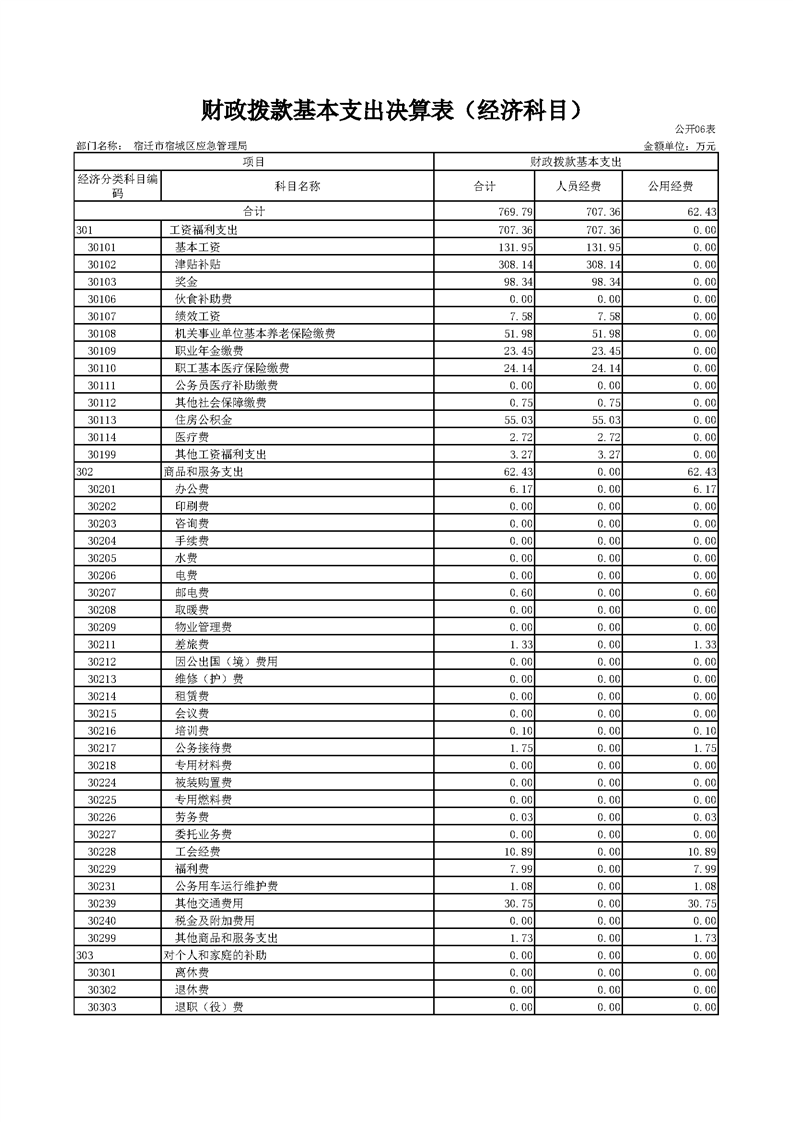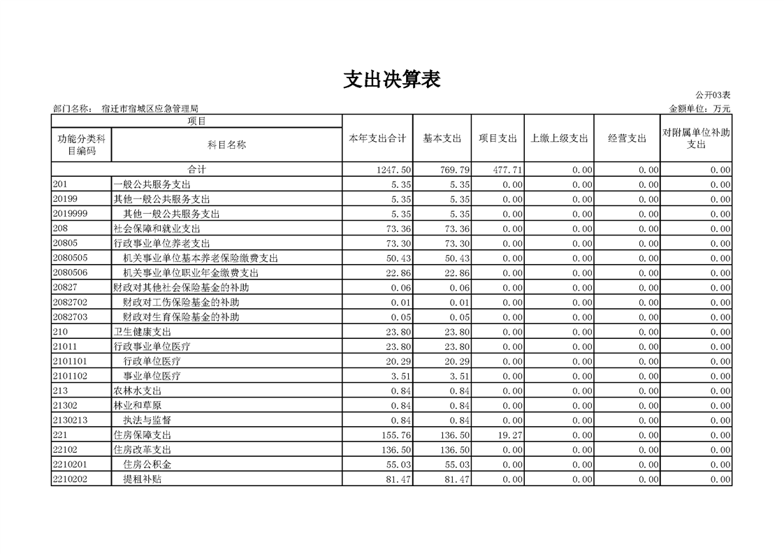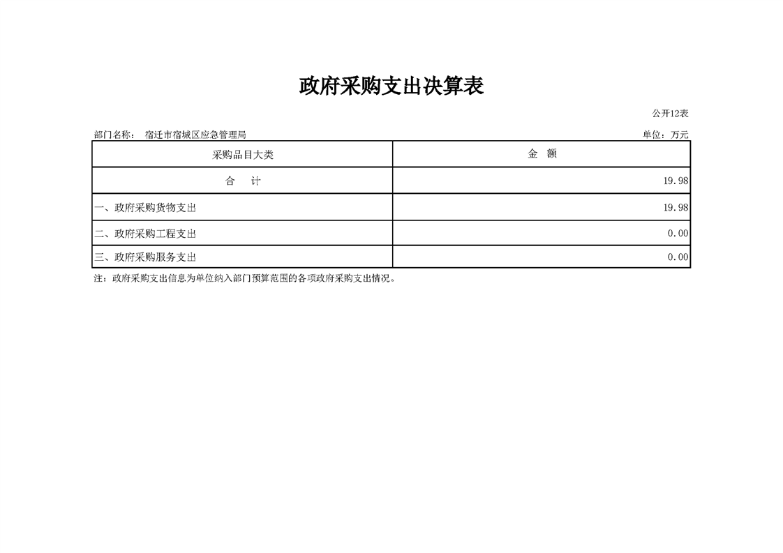 2020年宿迁市宿城区应急管理局决算公开表