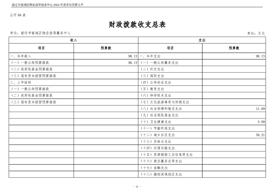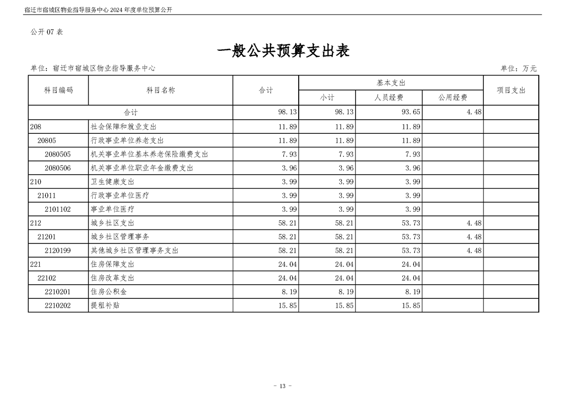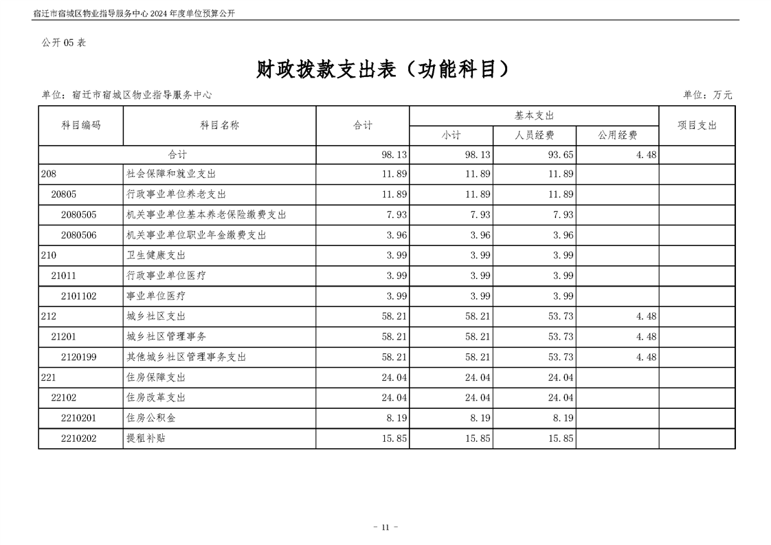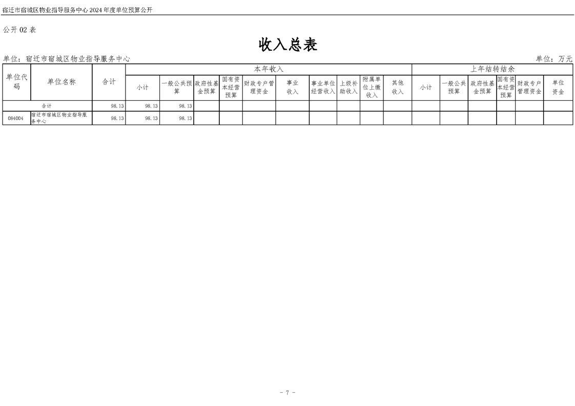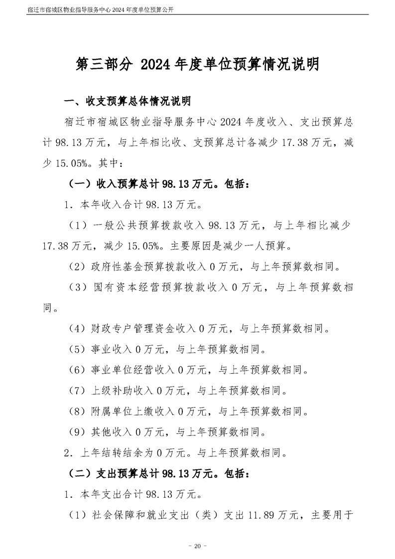 宿迁市宿城区物业指导服务中心2024年度单位预算公开