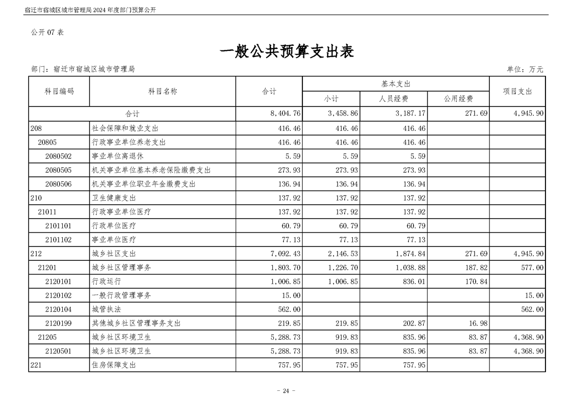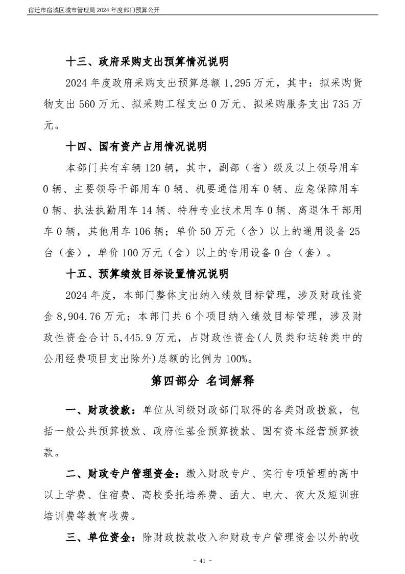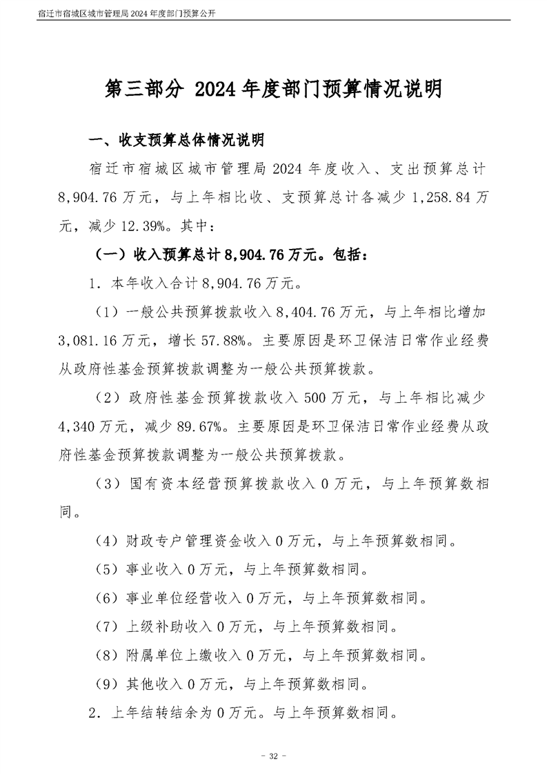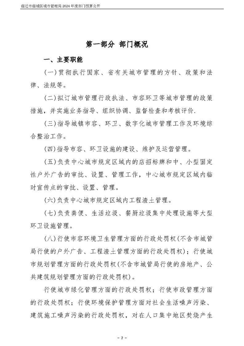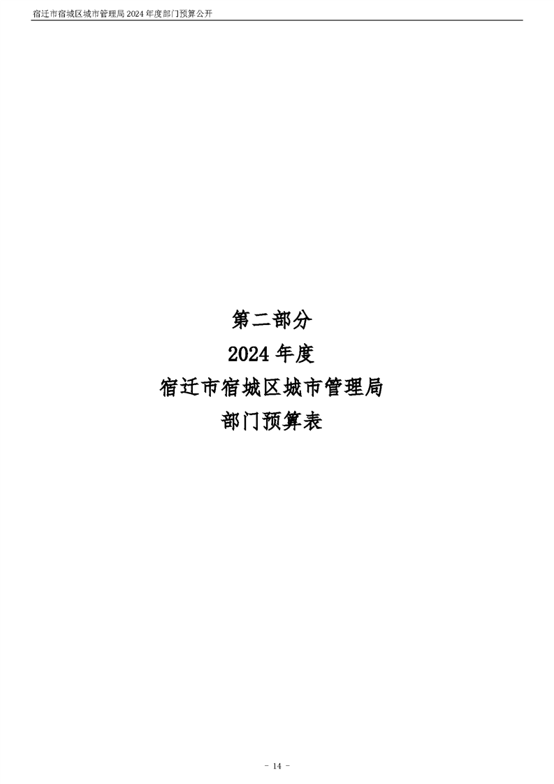 宿迁市宿城区城市管理局2024年度部门预算公开