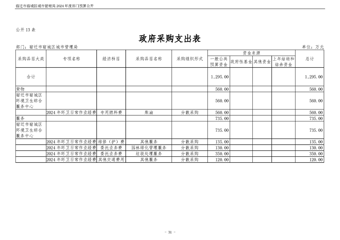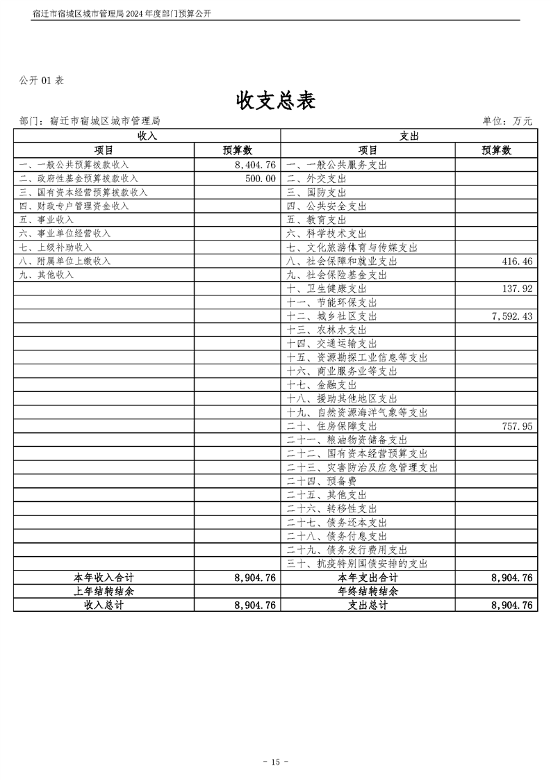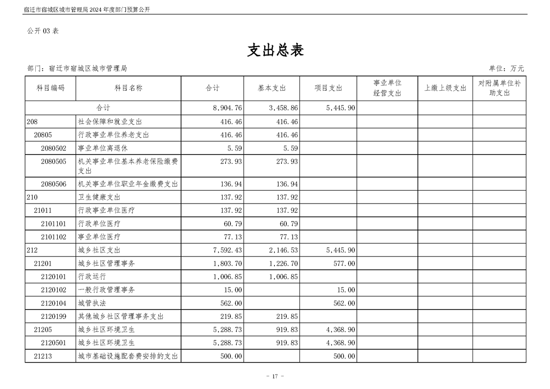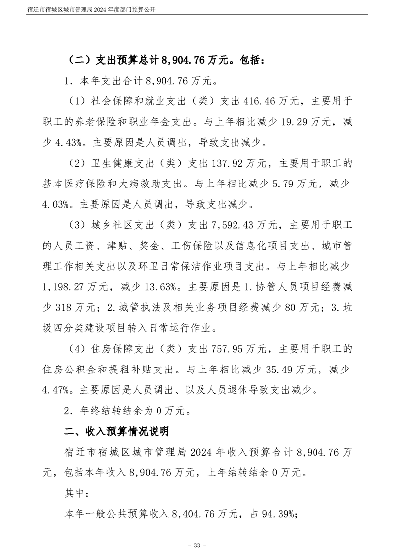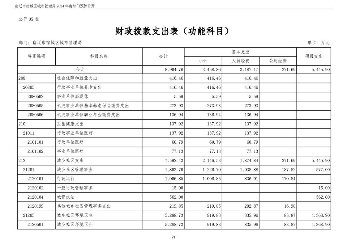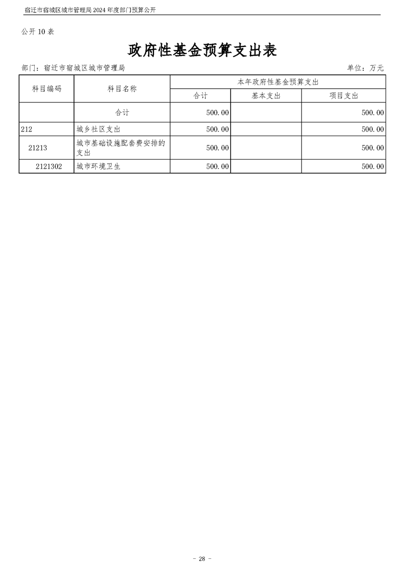 宿迁市宿城区城市管理局2024年度部门预算公开