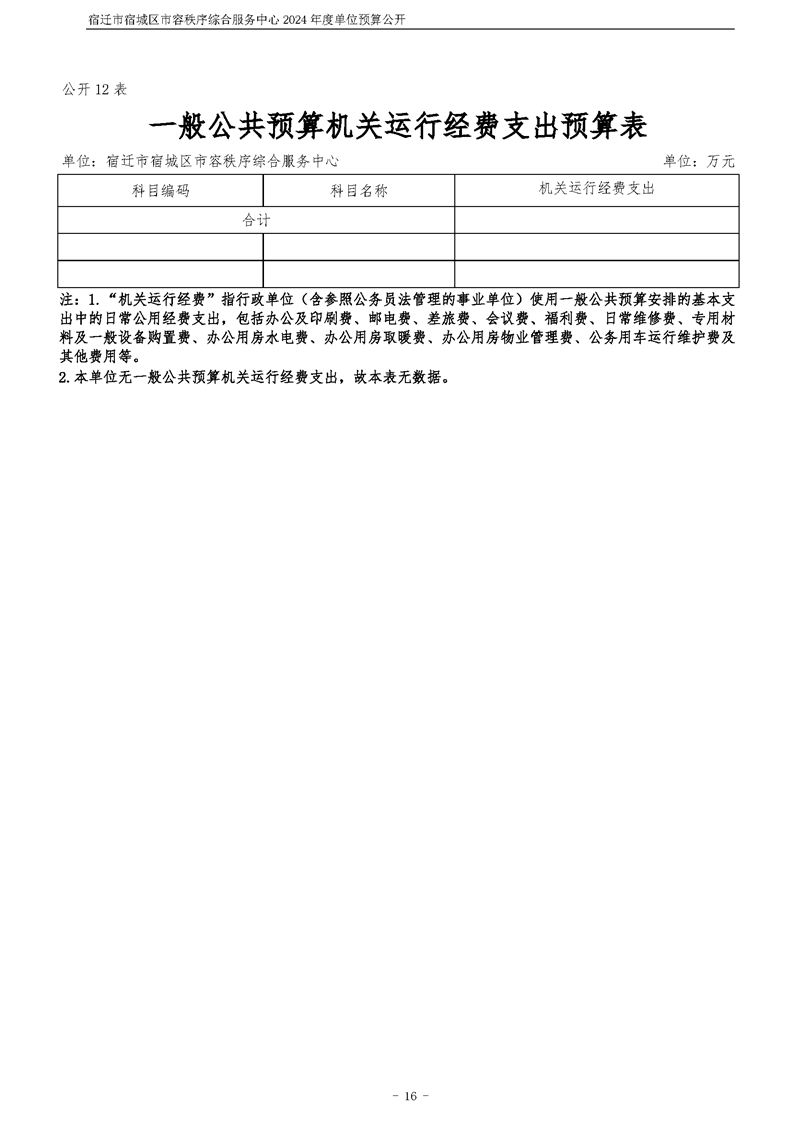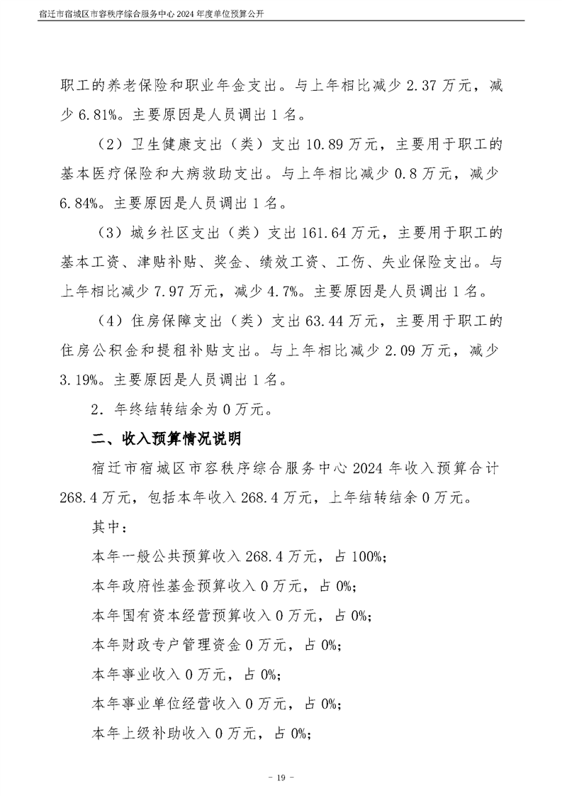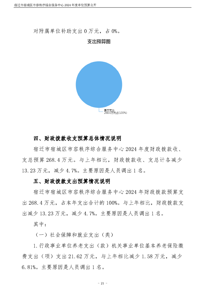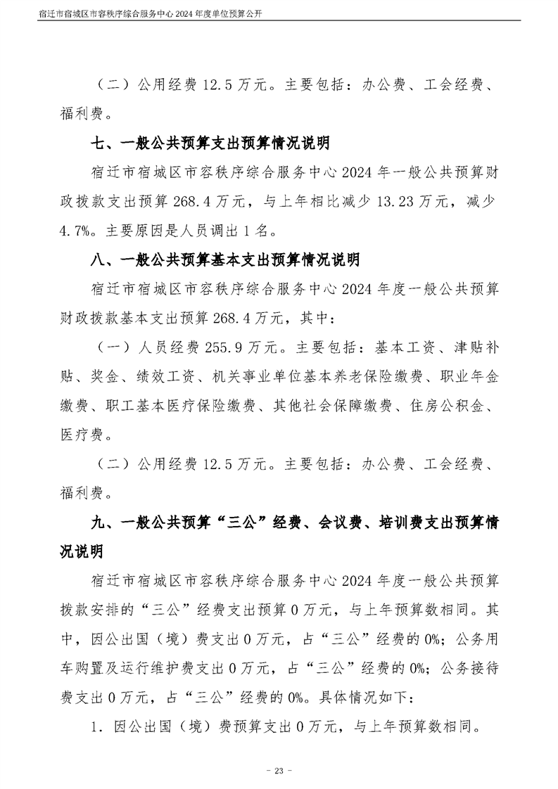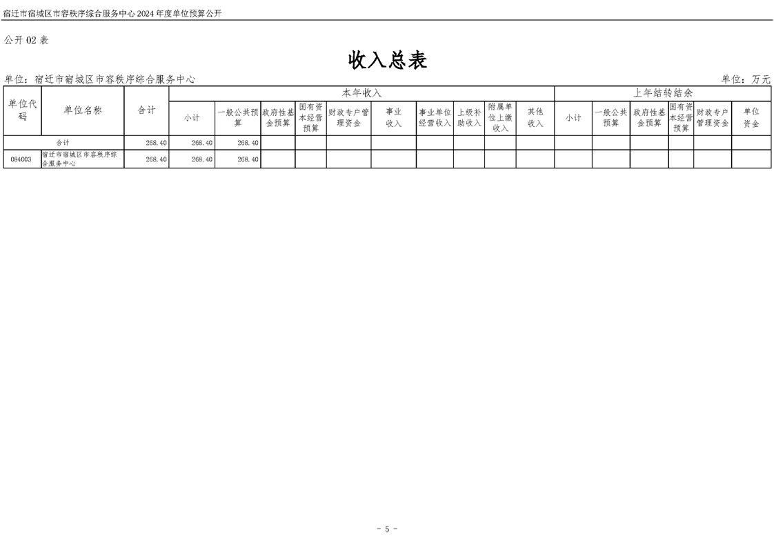 宿迁市宿城区市容秩序综合服务中心2024年度单位预算公开