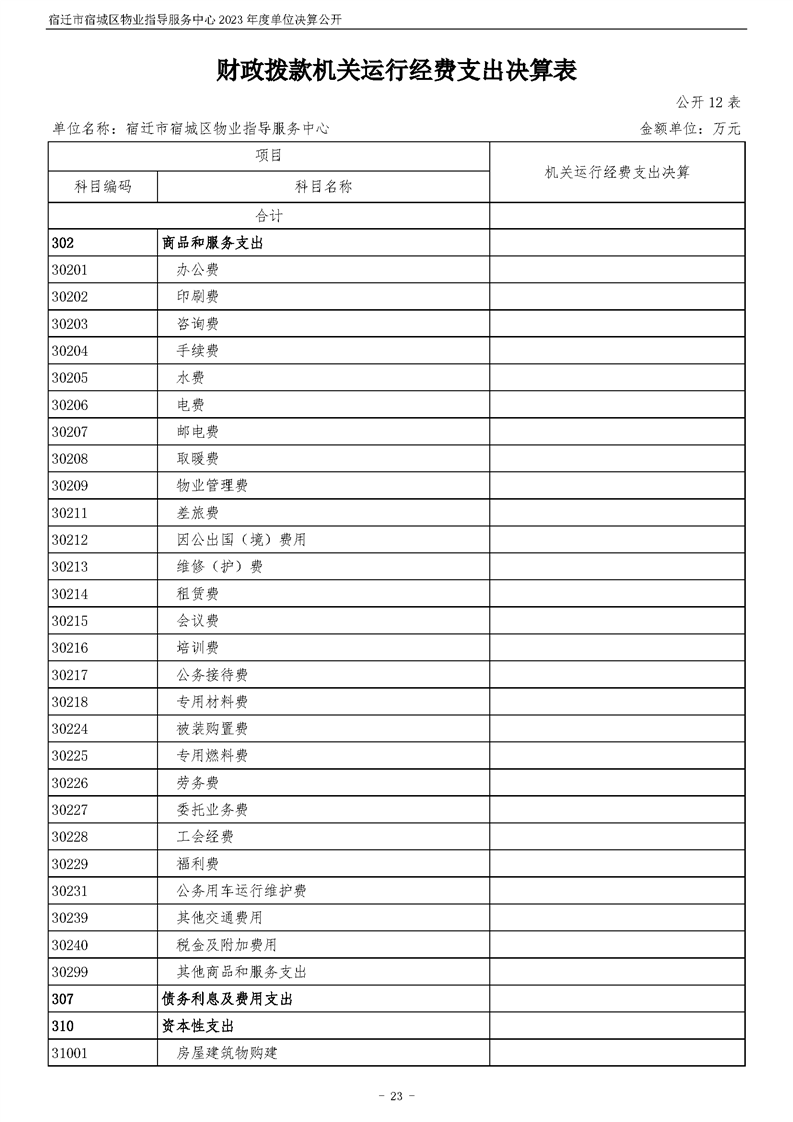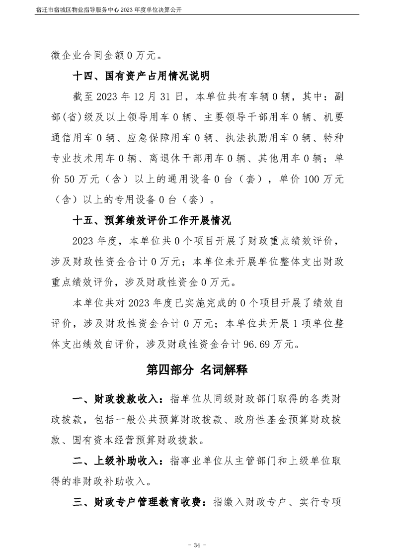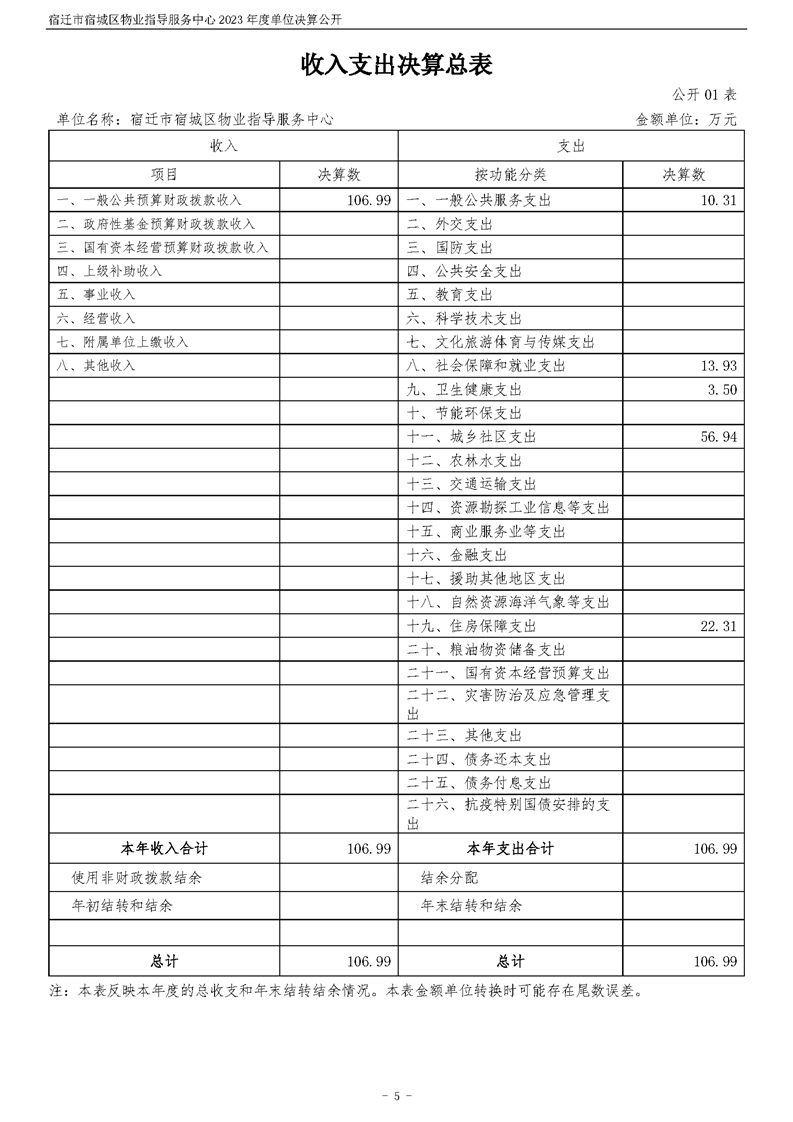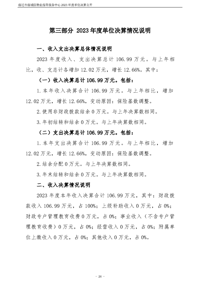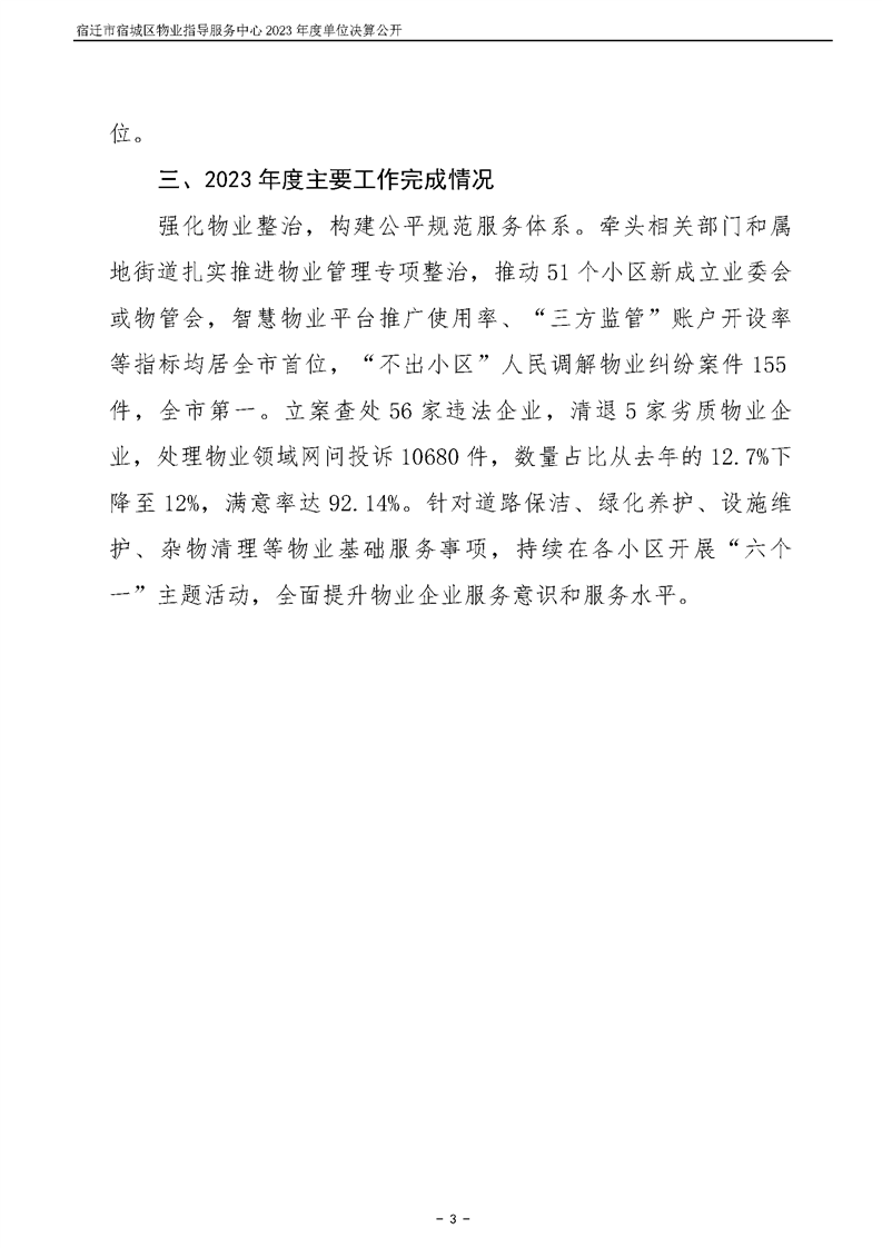宿迁市宿城区物业指导服务中心2023年度单位决算公开