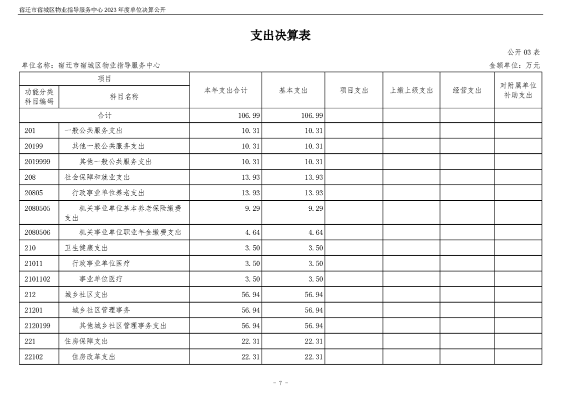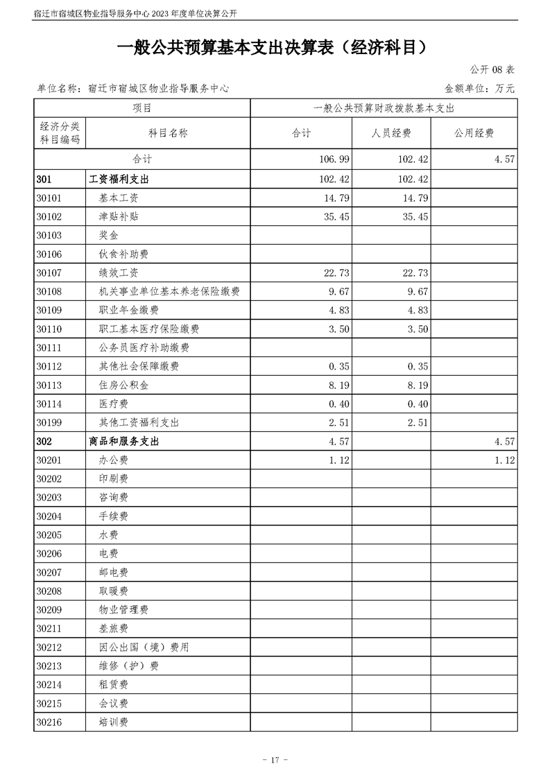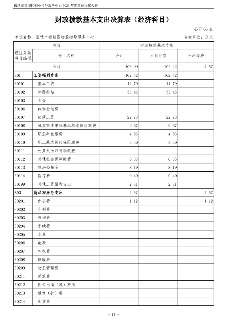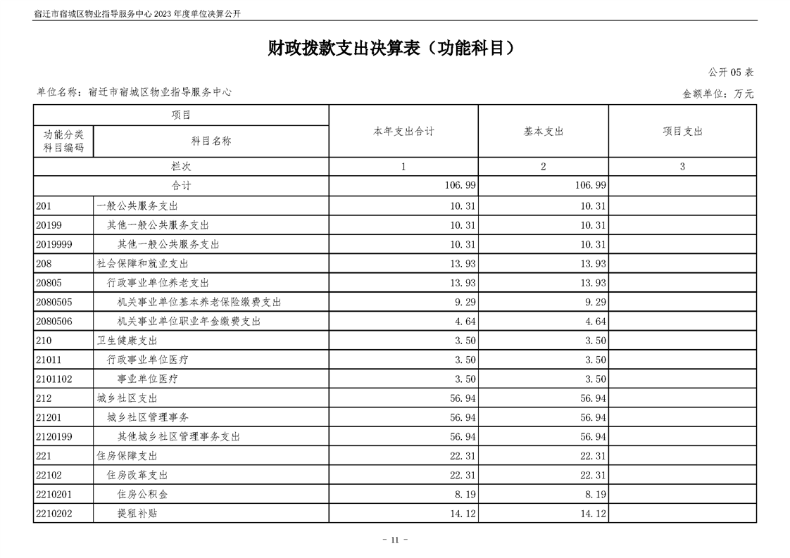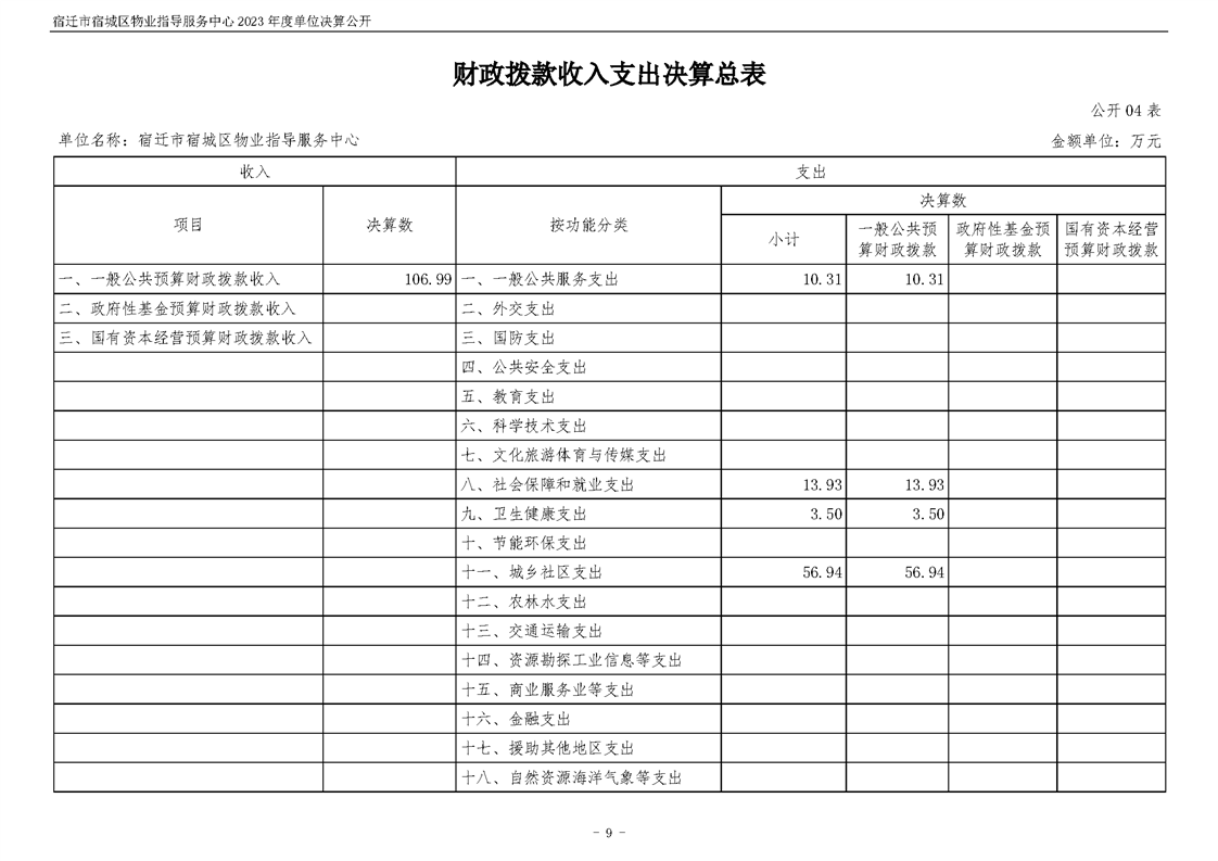 宿迁市宿城区物业指导服务中心2023年度单位决算公开