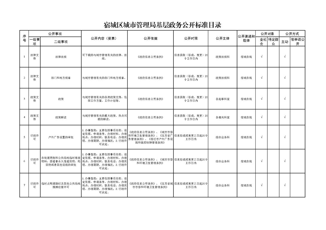 宿城区城市管理局基层政务公开标准目录(2025版)