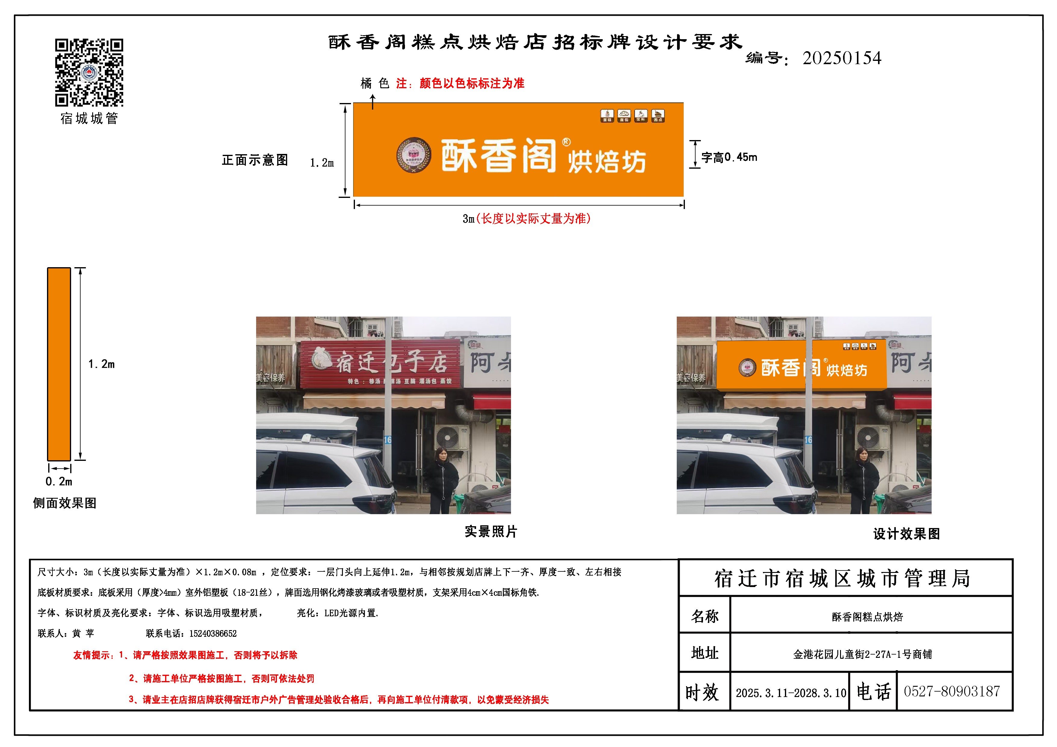 宿城区酥香阁糕点烘焙店店招标牌备案