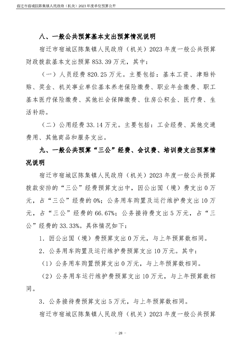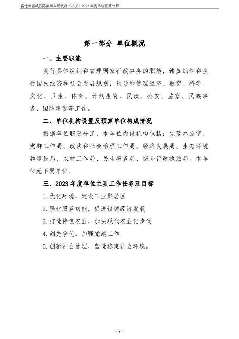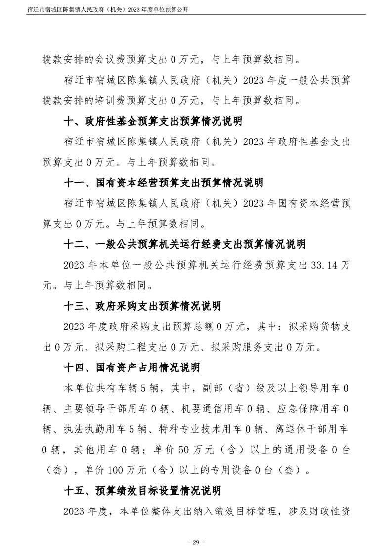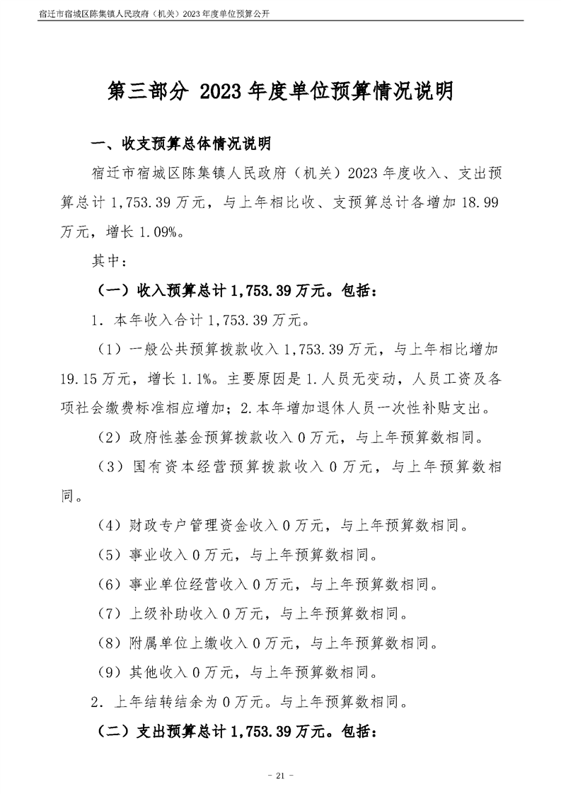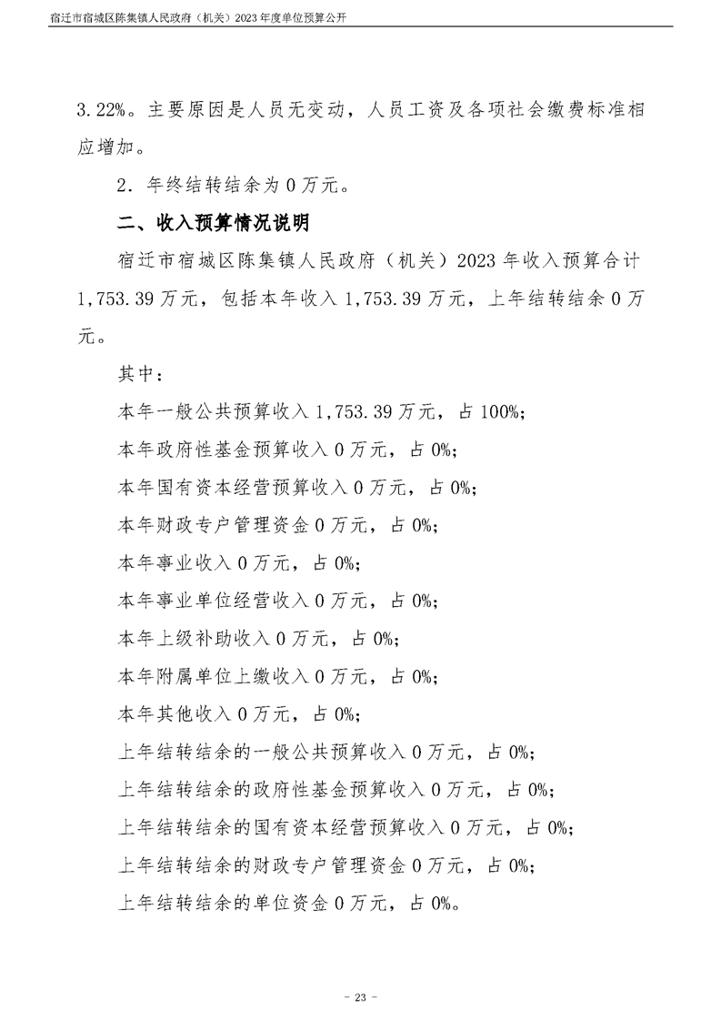 宿迁市宿城区陈集镇人民政府(机关)2023年度单位预算公开