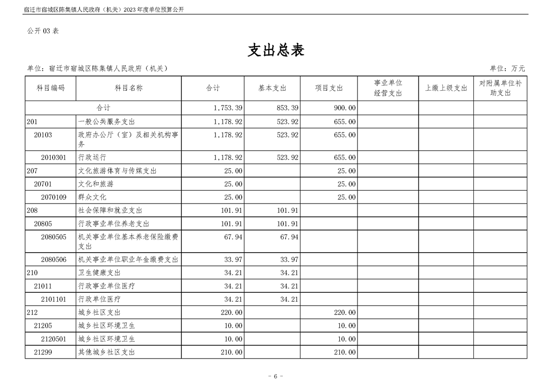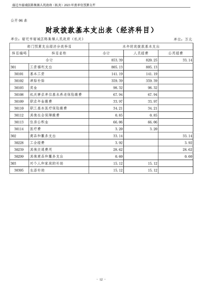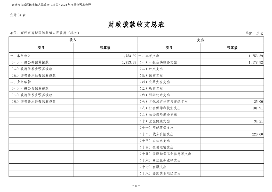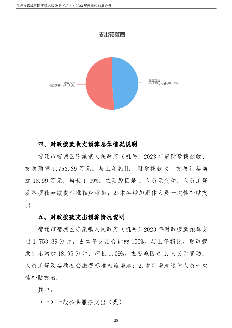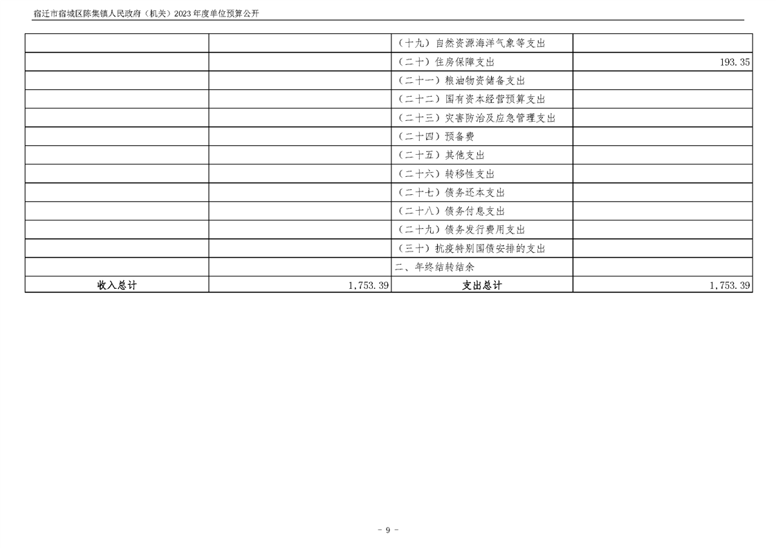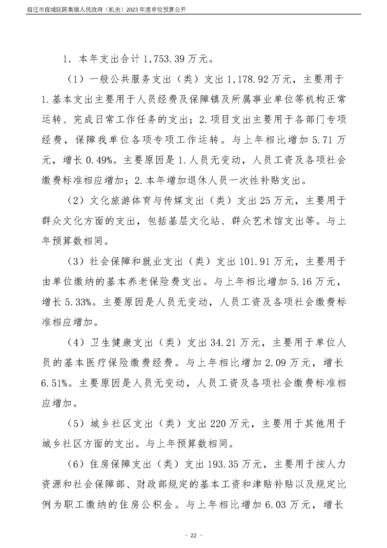 宿迁市宿城区陈集镇人民政府(机关)2023年度单位预算公开