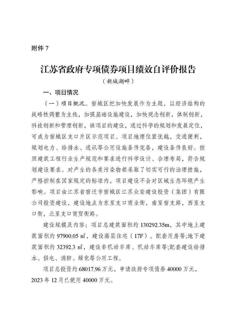 【债务信息】2023年度江苏省政府专项债券项目资金绩效自评价