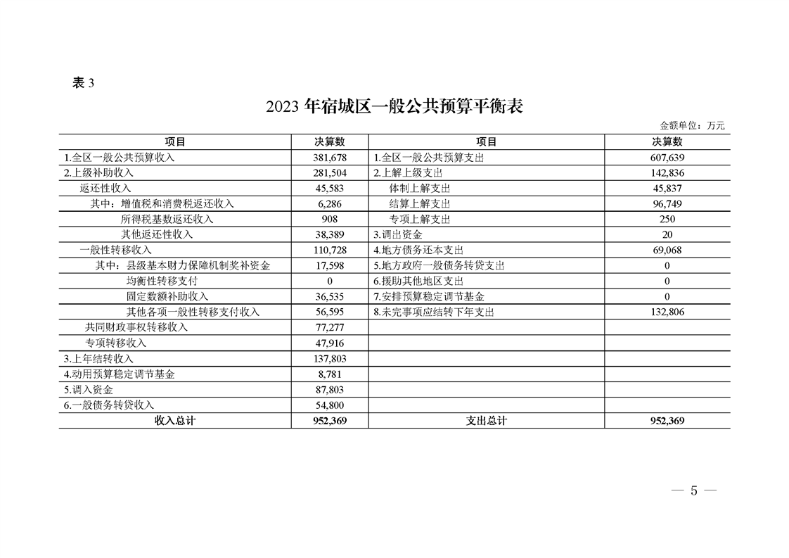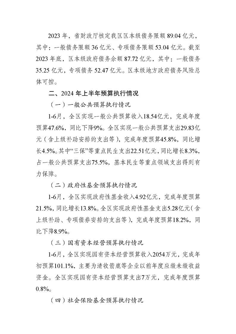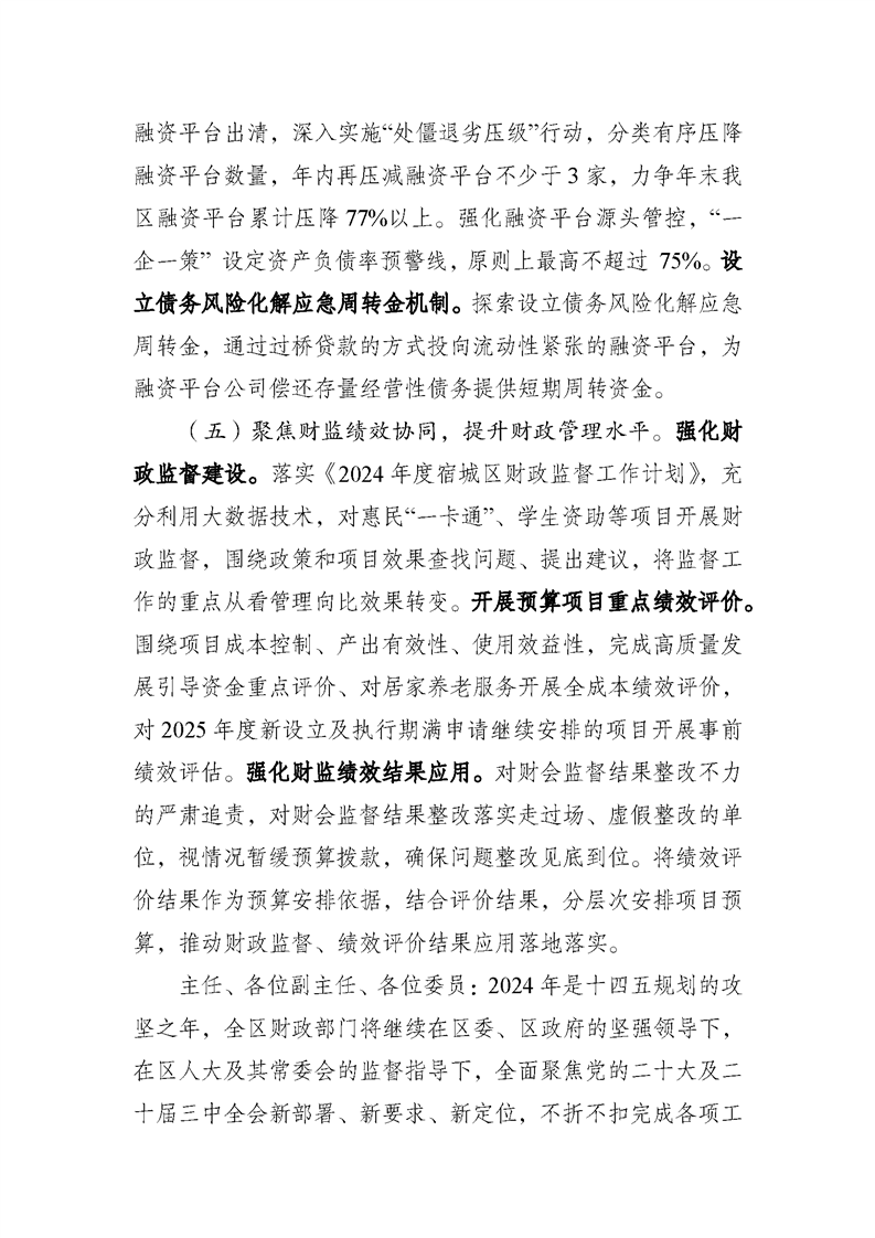 关于宿城区2023年区本级财政决算草案和2024年上半年预算执行情况的报告