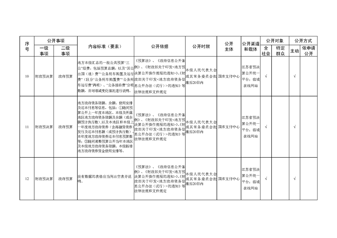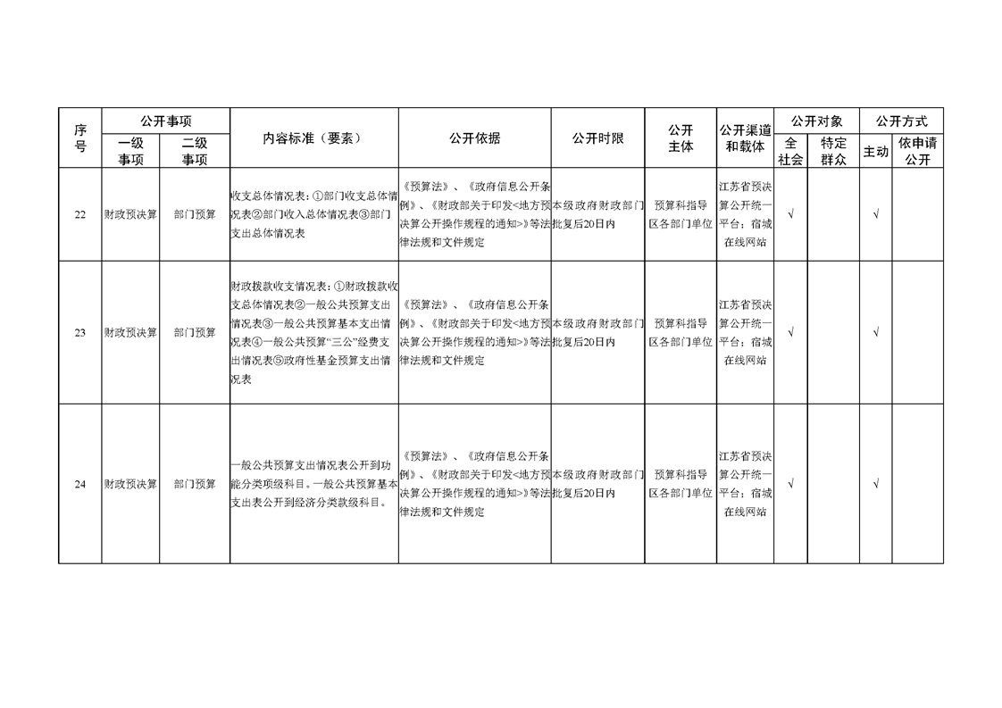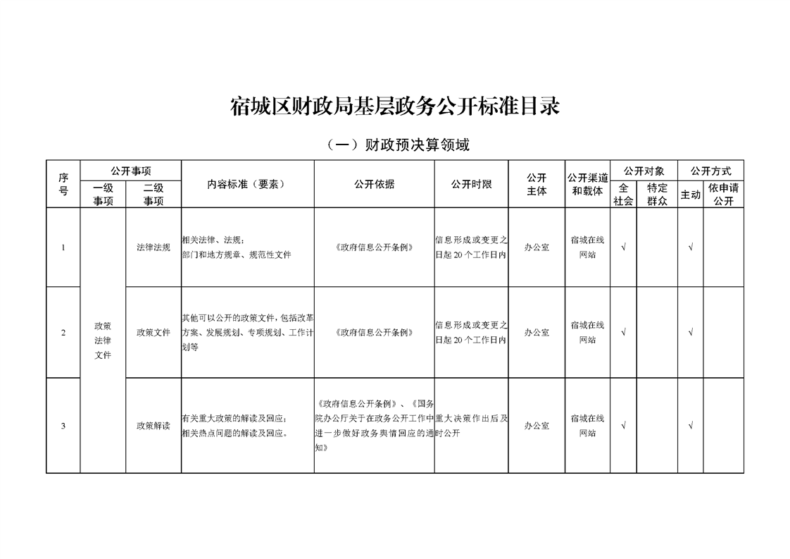 宿城区财政局基层政务公开标准目录(2024版)