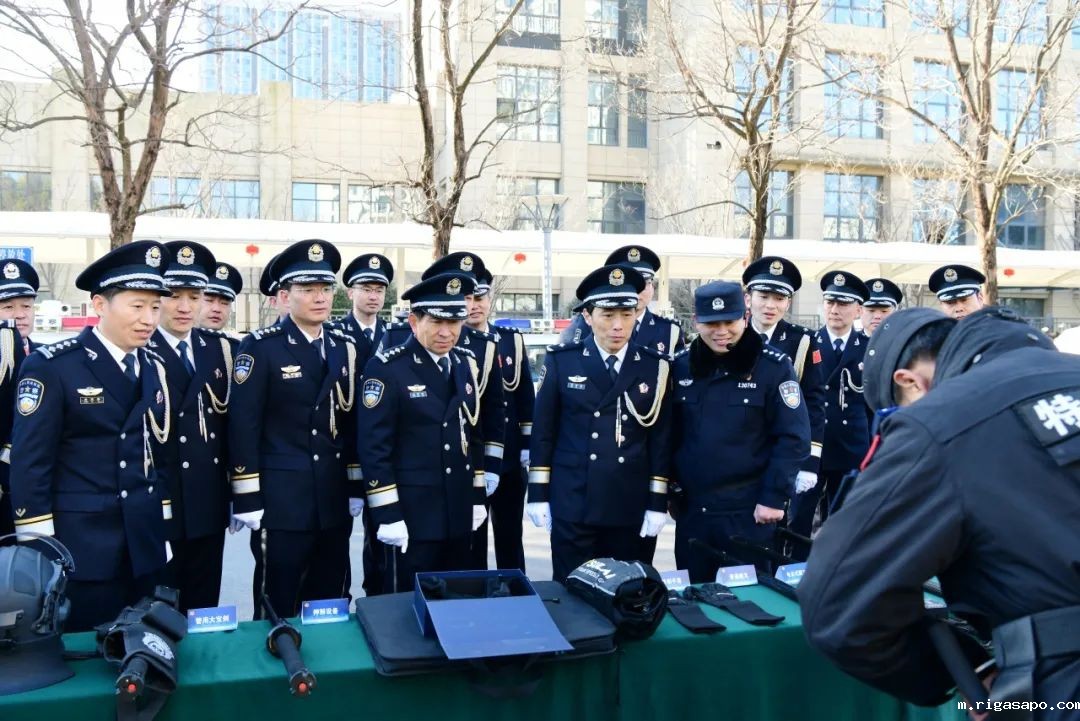 升旗仪式结束后,分局领导班子成员带领大家依次观摩了单警装备、无人机、特种车辆等警用装备展。