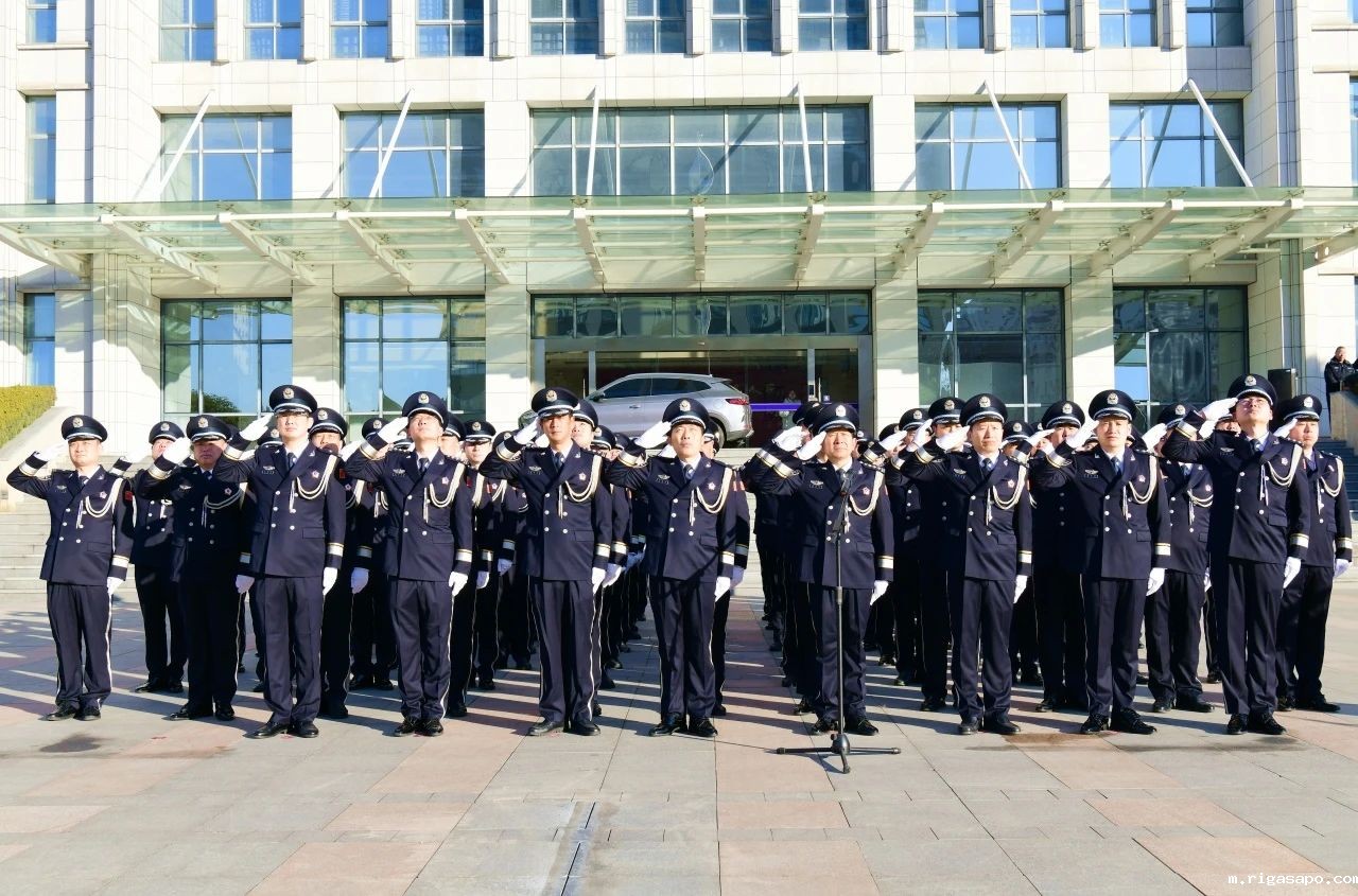 参加仪式的全体民警列队肃立,面向警旗庄严敬礼,高唱《中国人民警察警歌》,表达对党和祖国的无限忠诚,对中国人民警察事业的无限热爱。