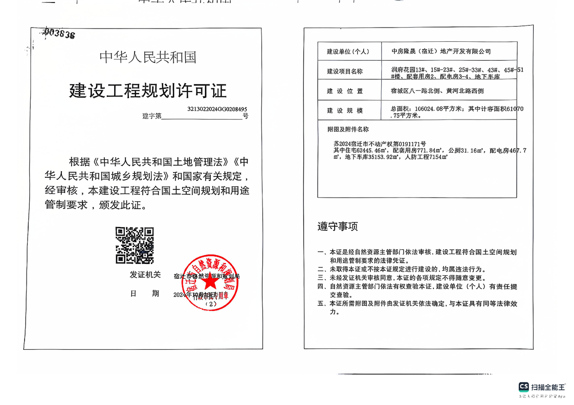 【建设工程规划许可证】中房隆晟(宿迁)地产开发有限公司建设工程规划许可证