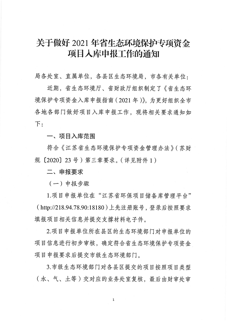 关于做好2021年省生态环境保护专项资金项目入库申报工作的通知