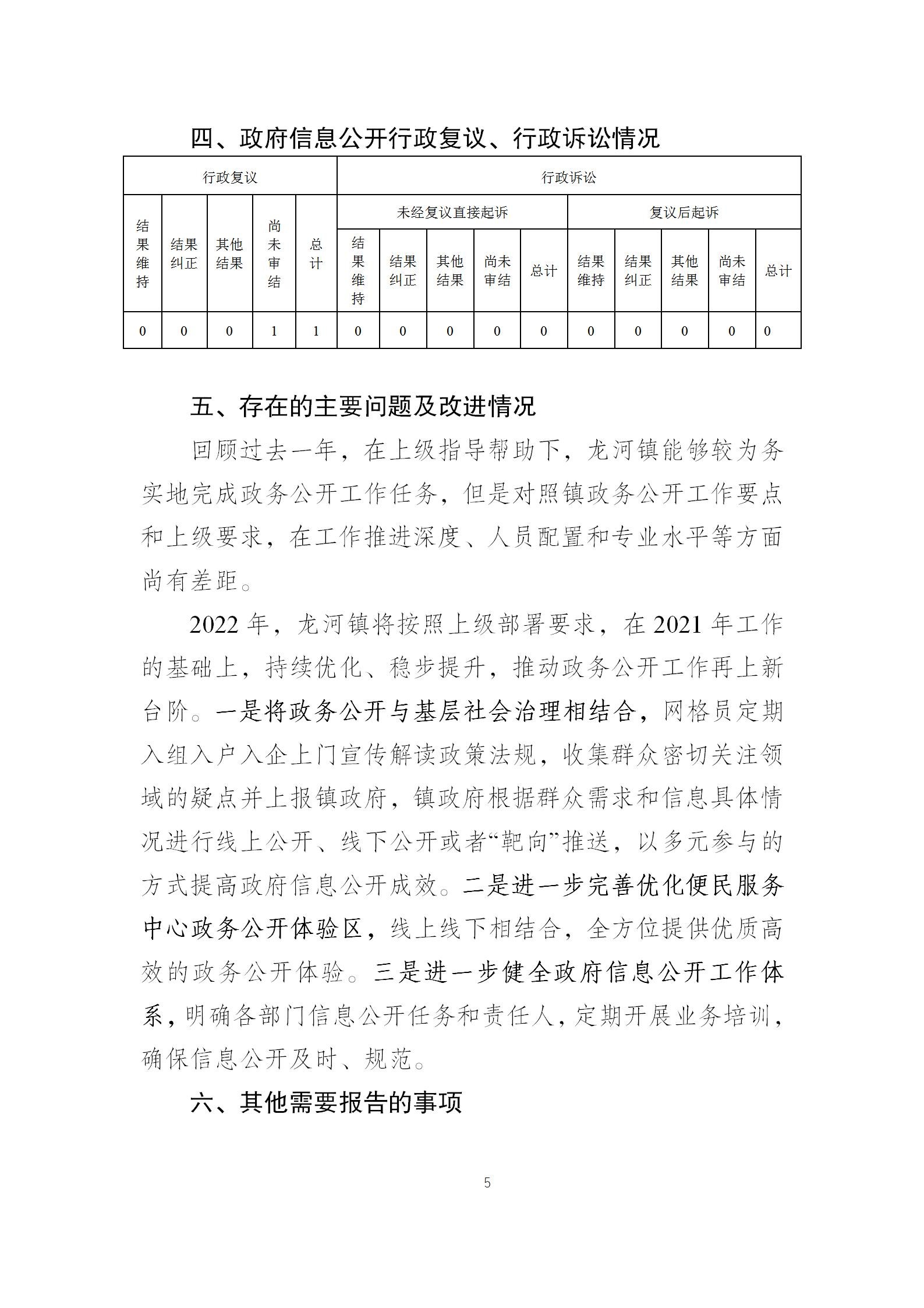 宿城区龙河镇人民政府2021年政府信息公开工作年度报告