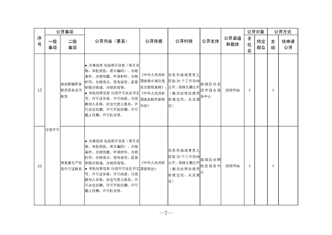 宿城区农业农村局基层政务公开标准目录(2024版)