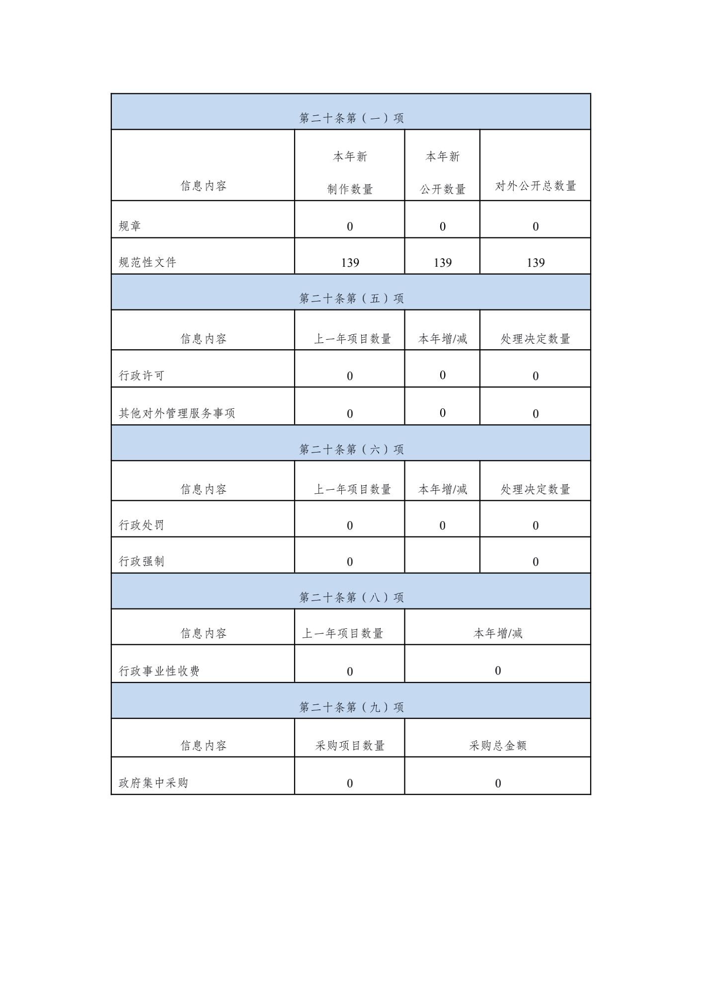 2019 年共公开各类政府信息 147条,其中主动公开规范性文件数 139 条,信息公开指南文件总数 3 条;信息公开制度文件 1条;机构概况文件 4 条;政策文件 13 条;计划总结文件 10条;业务信息文件 94 条;人事信息文件 10 条;财政信息文件 4条。