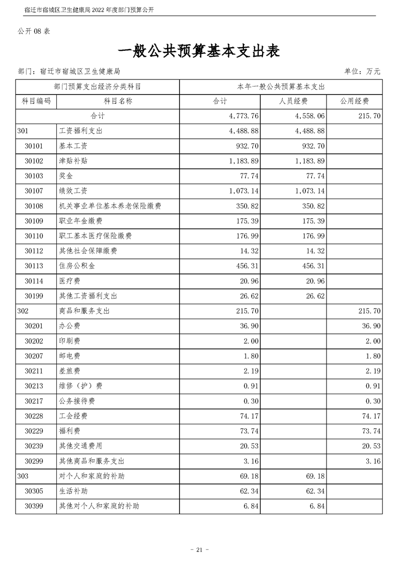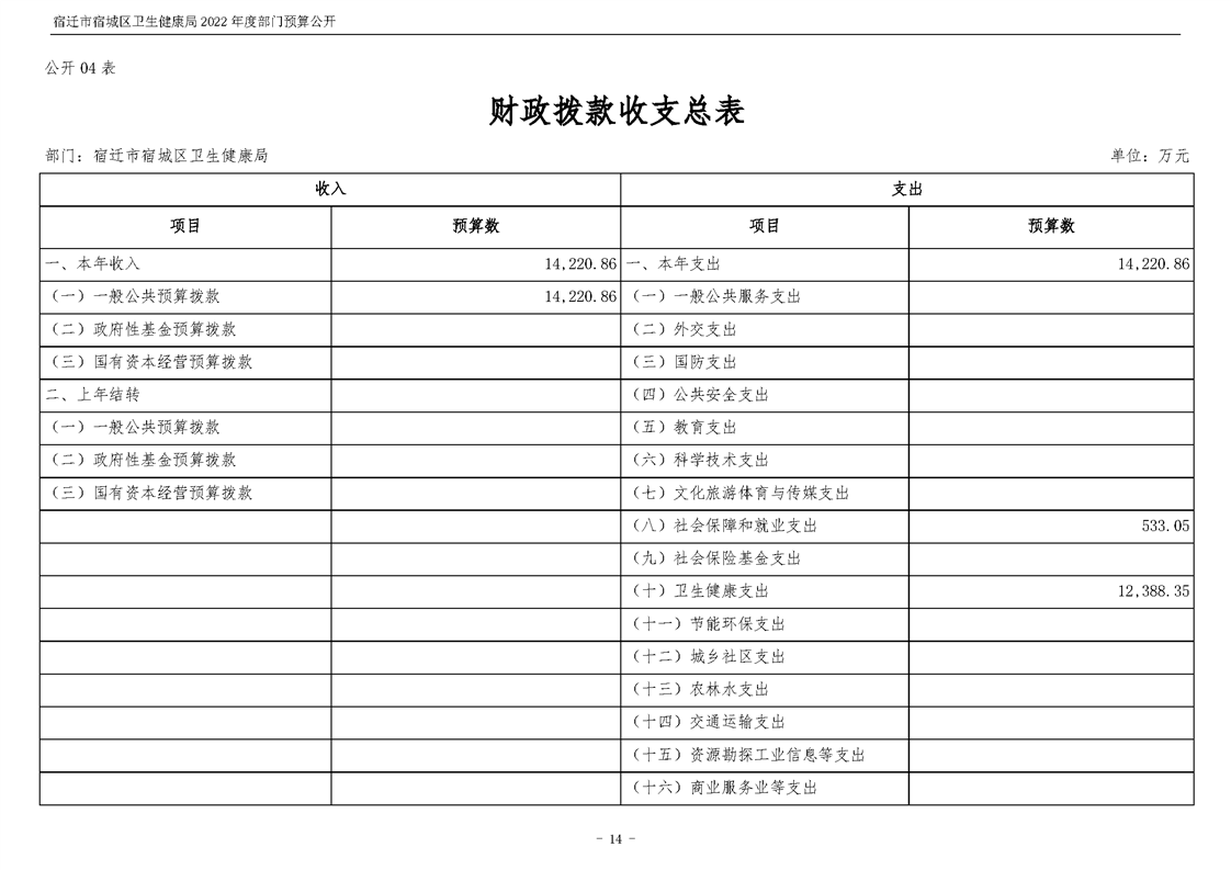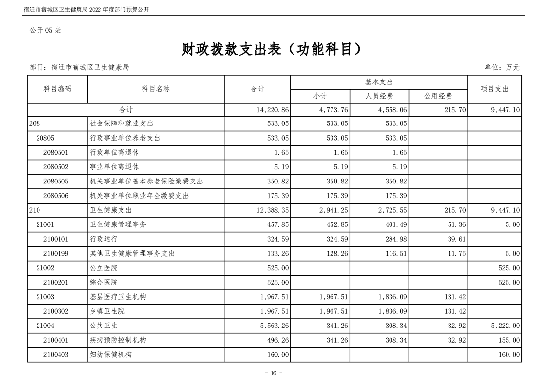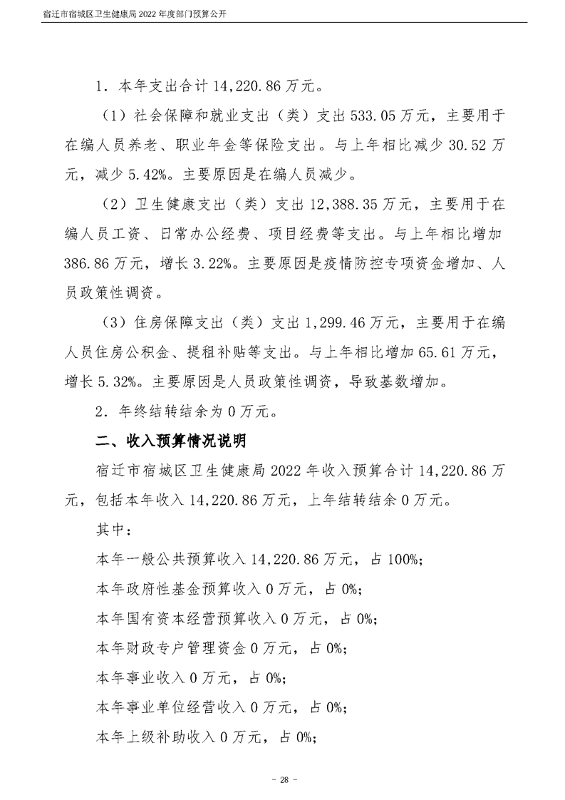 宿迁市宿城区卫生健康局2022年度部门预算公开