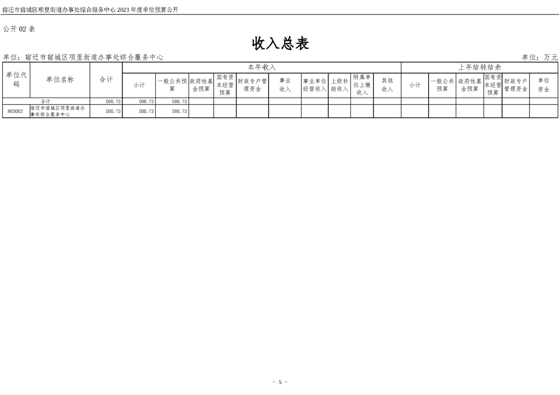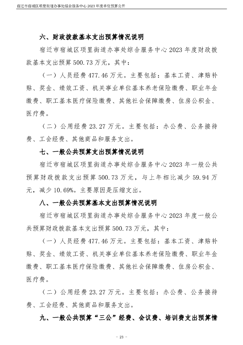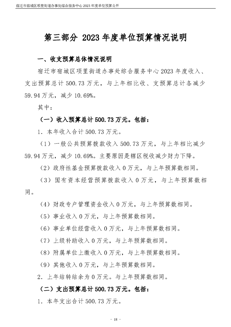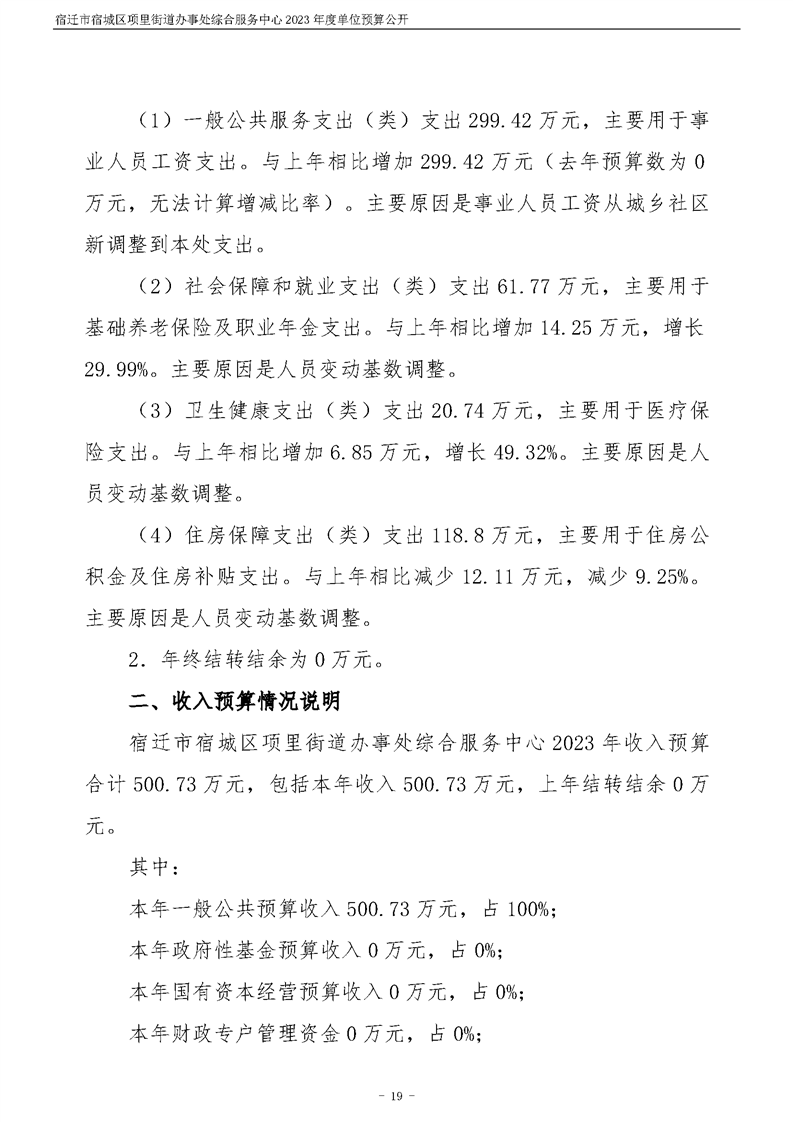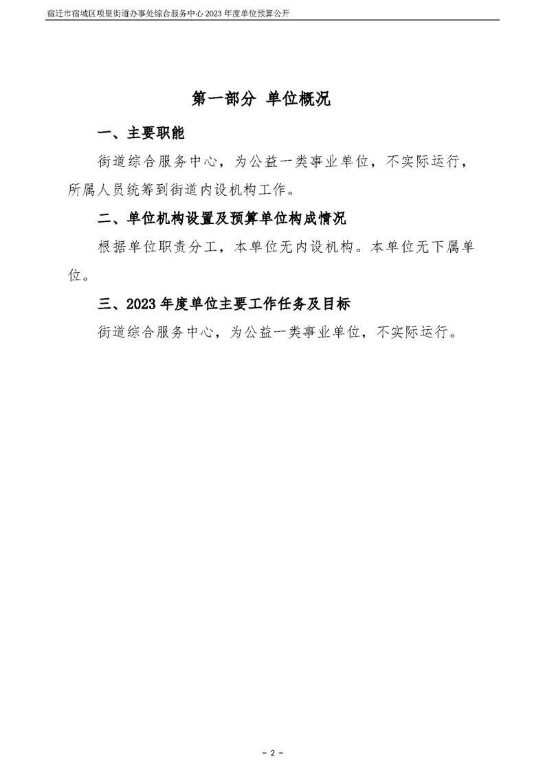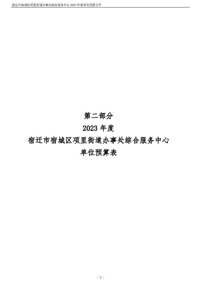 宿迁市宿城区项里街道办事处综合服务中心2023年度单位预算公开