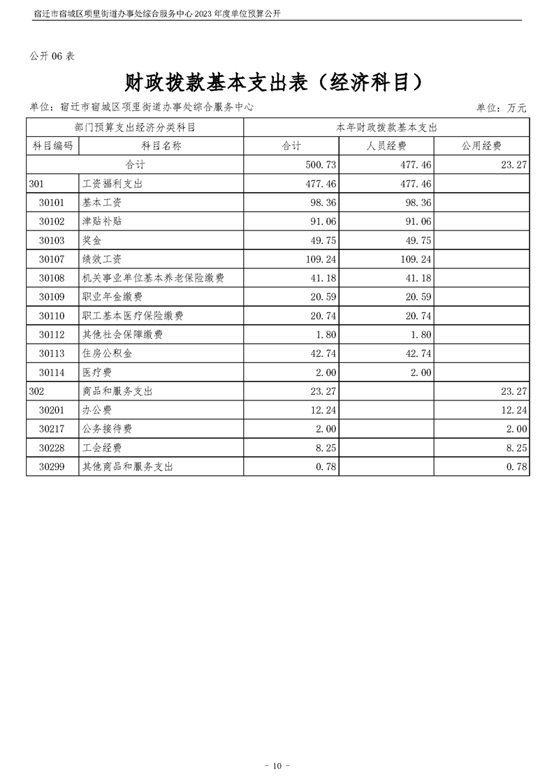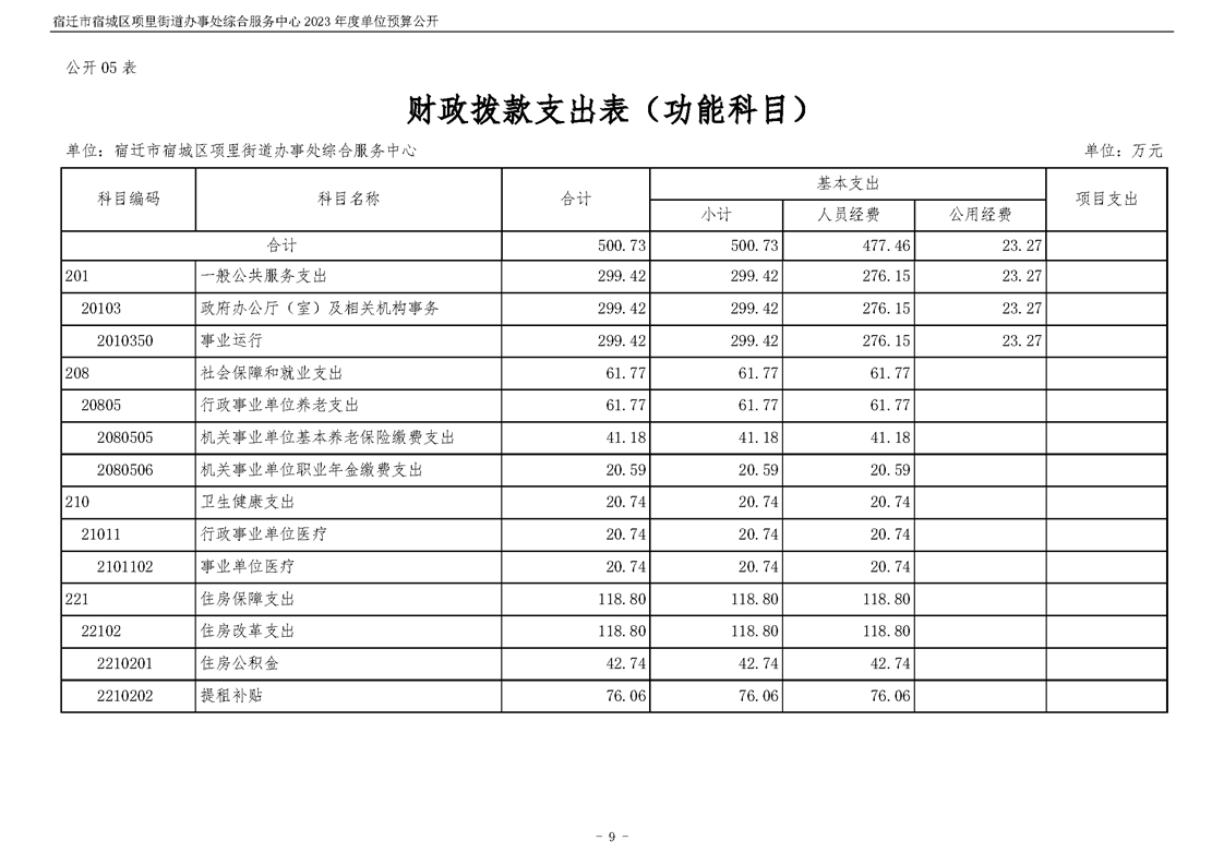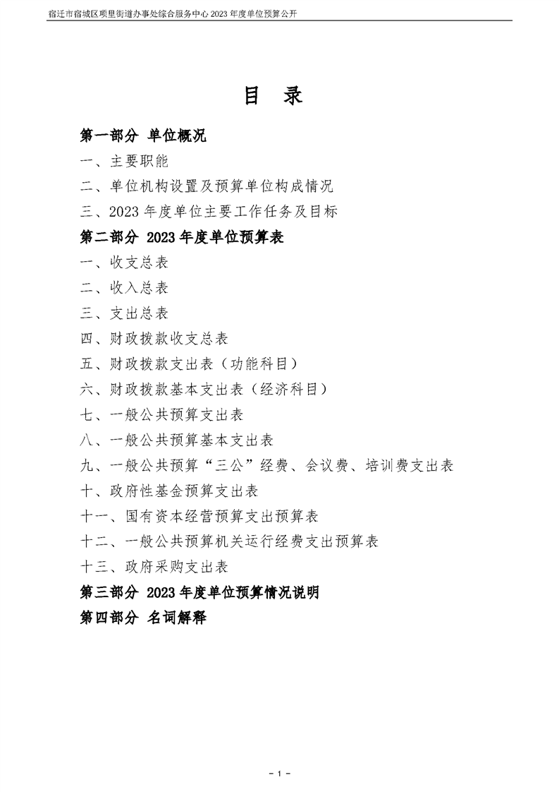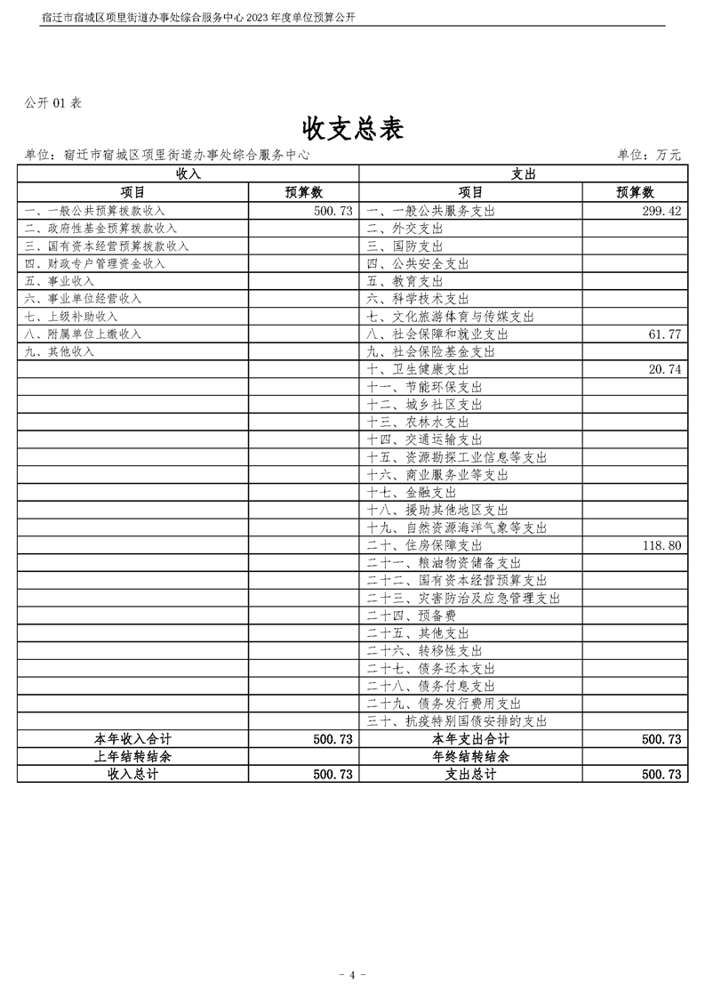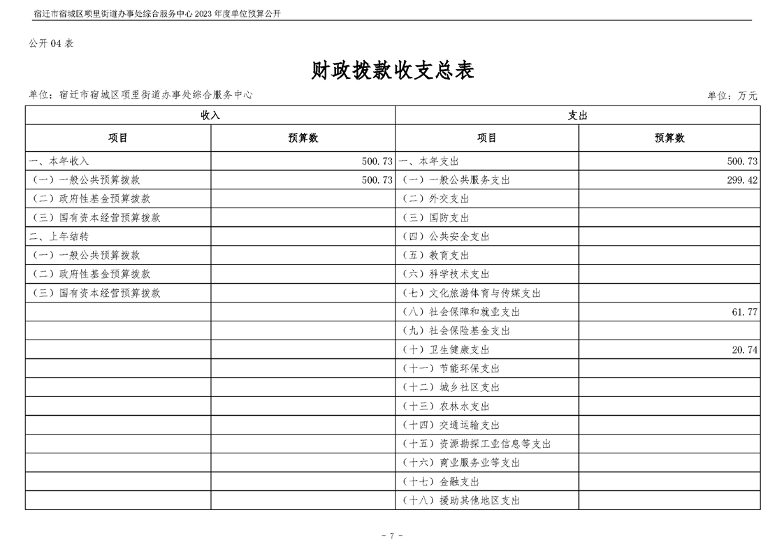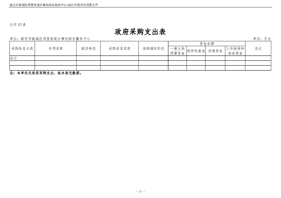 宿迁市宿城区项里街道办事处综合服务中心2023年度单位预算公开
