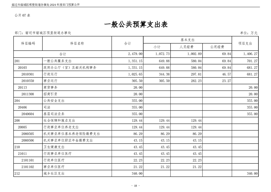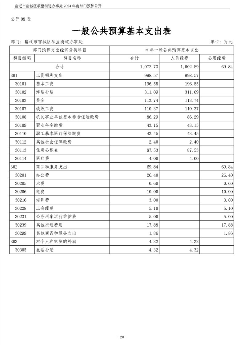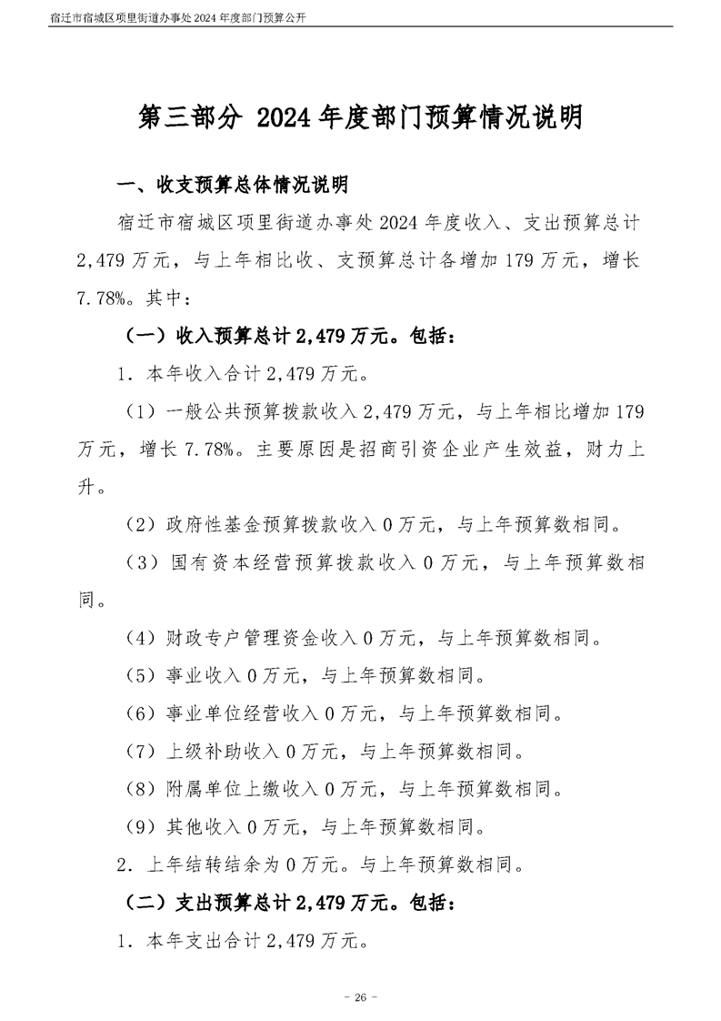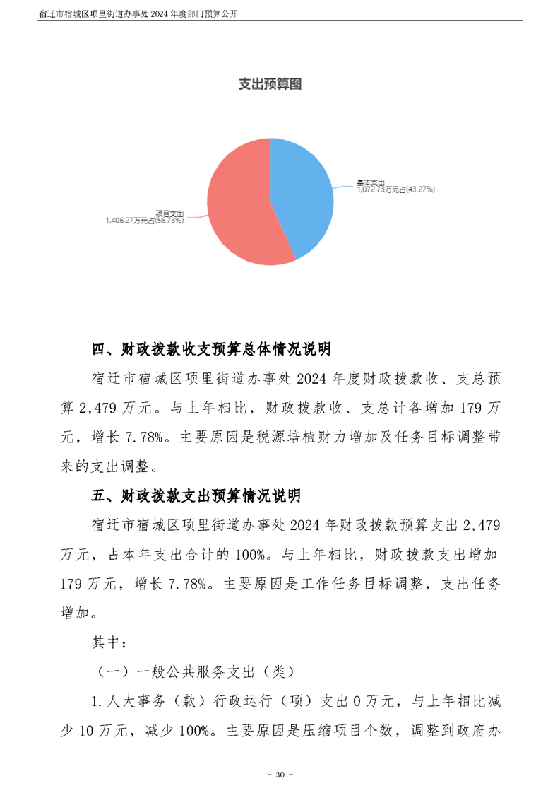 宿迁市宿城区项里街道办事处2024年度部门预算公开
