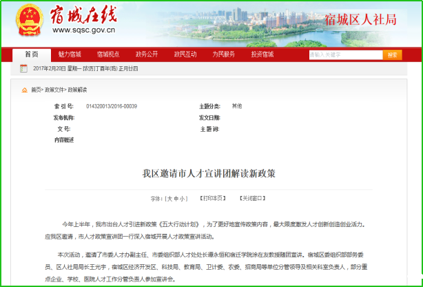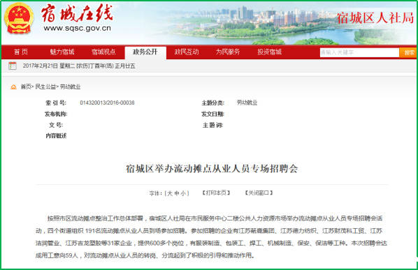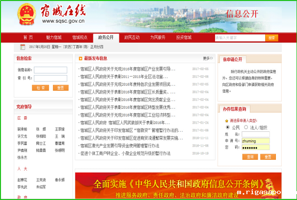宿城区2016年政府信息公开年度报告